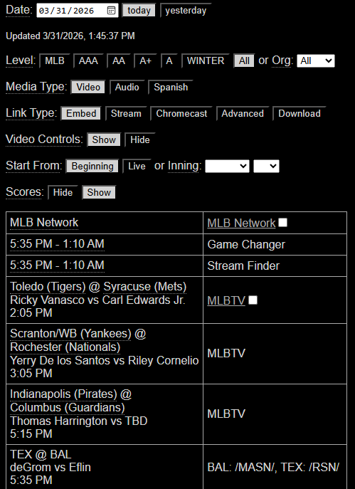 It also adds an experimental feature: a MPEGTS output format where you can adjust the audio sync with a URL parameter. Unfortunately MLB may not be giving us streams with a consistent sync differential right now (it grows in an nonlinear fashion throughout the game), so this may not be too useful at the moment.