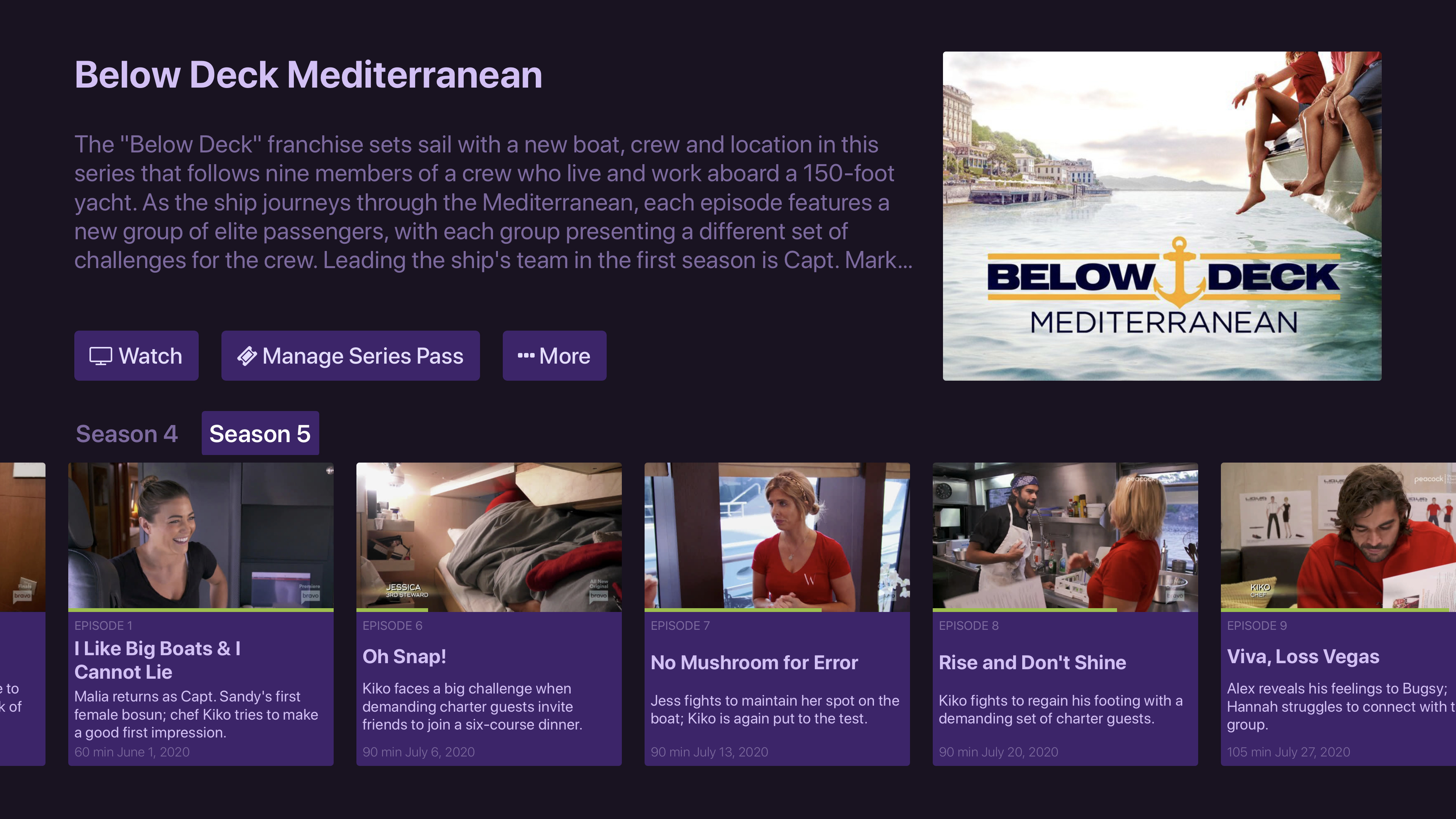 It shows more for info about the episode and lets you jump to episodes for each season