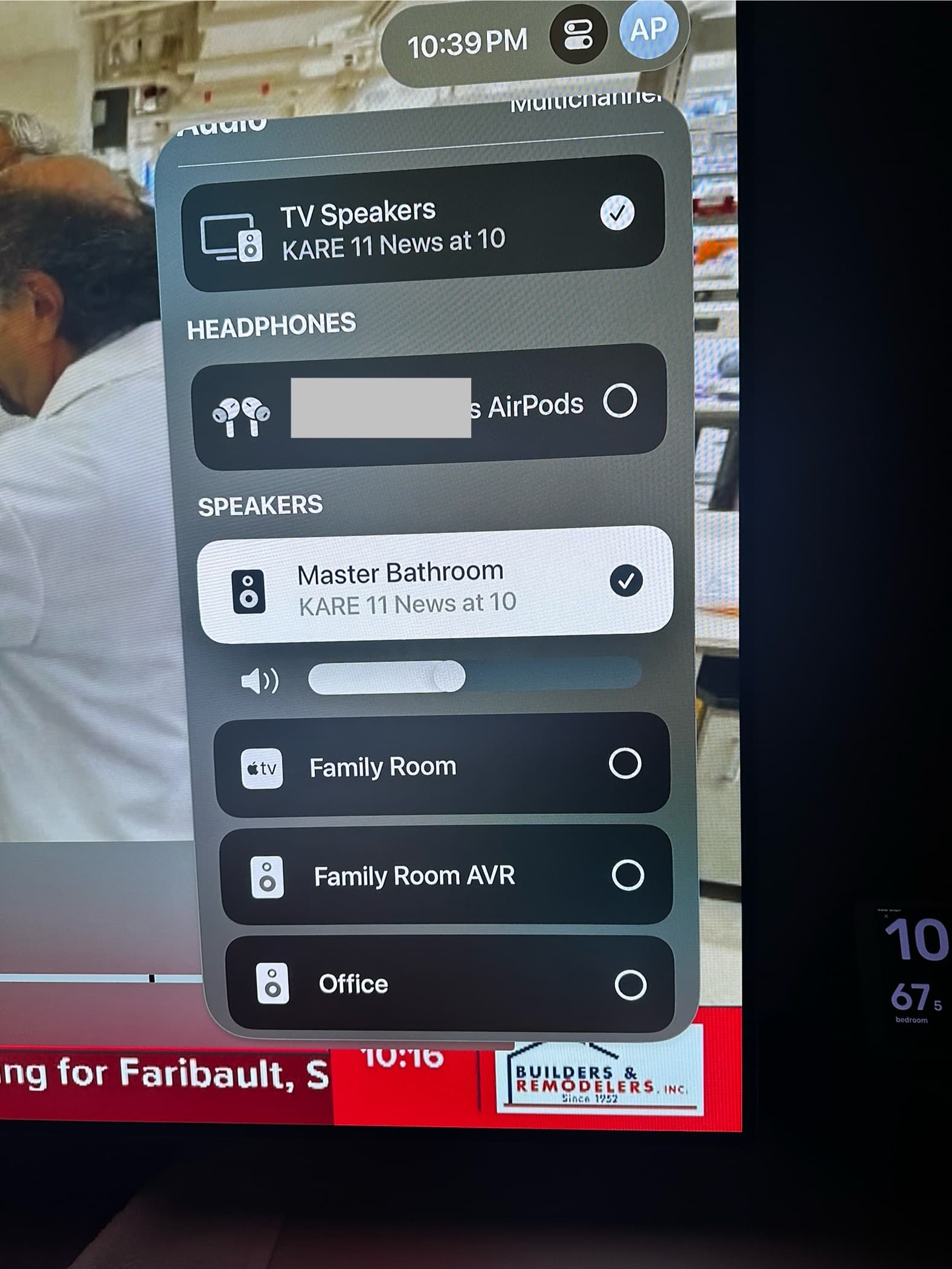 I am attempting to have the audio play through the built in TV speakers via the HDMI cable and to an external AirPlay speaker at the same time. (See the attached image.)