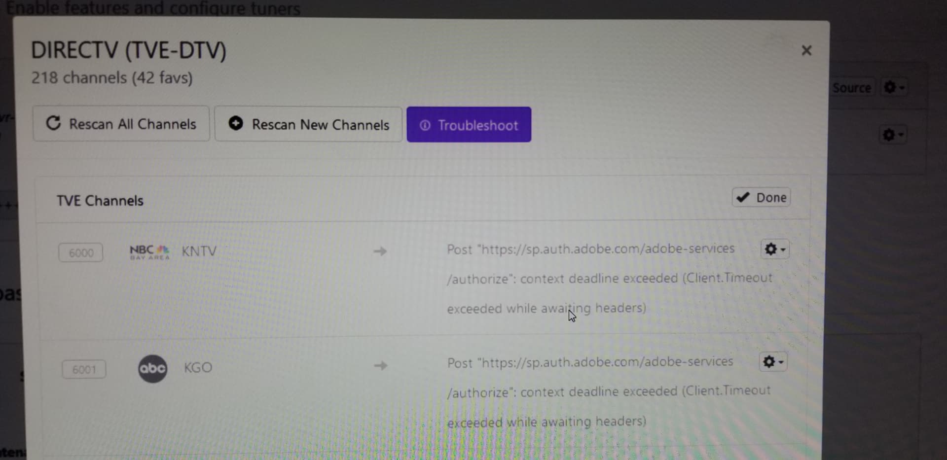 I use DirecTV on Channels and it seems like a bunch of TV channels (such as TBS and TNT) that used to show up are no longer there, and I have even refreshed the channels on the server.