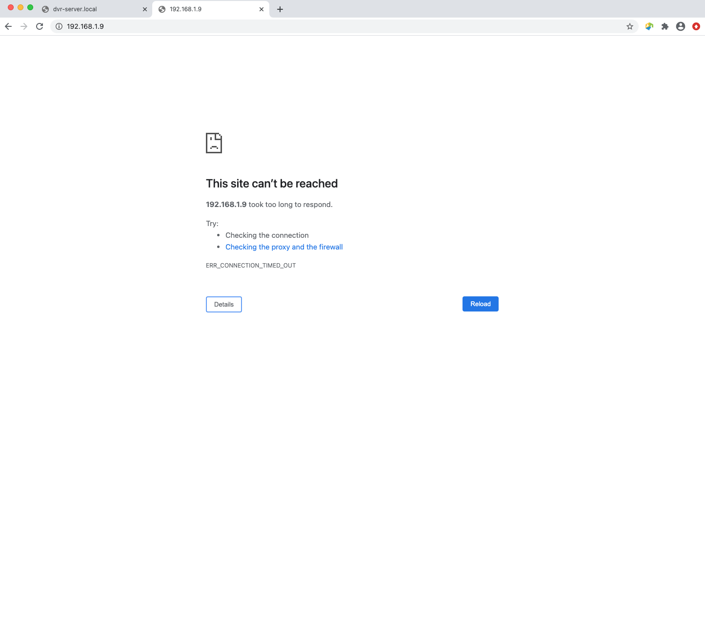 (as a sidenote: I am of course no expert, but it feels to me that the fact that the DVR Server immediately jumps to disabling mode doesn't even let the server connect to the network and therefore I am unable to connect to if from my imac's web browser.)
