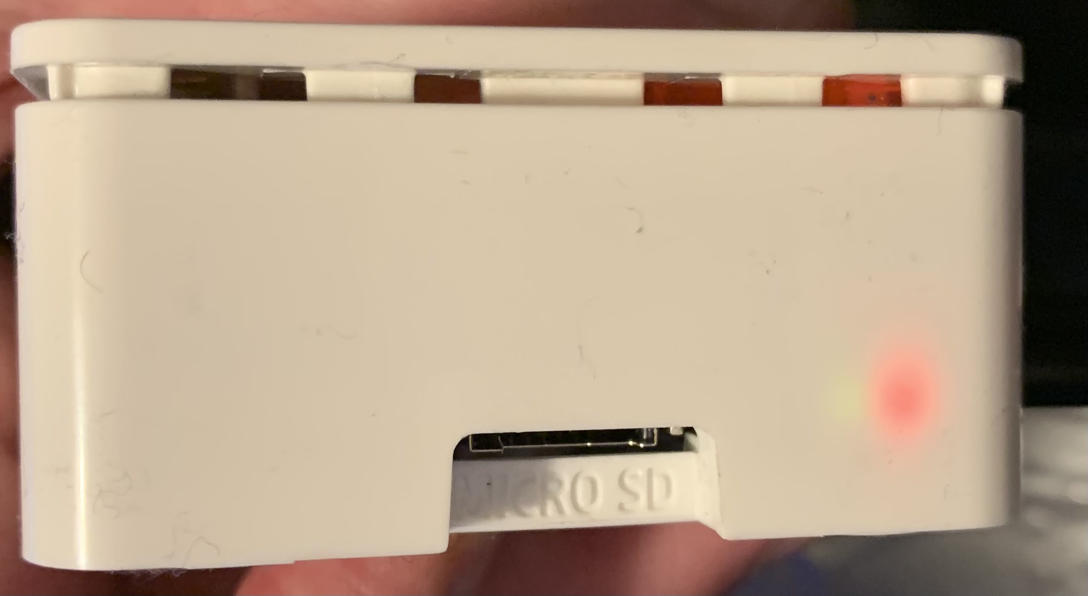 To answer @tmm1 Aman's question on the Raspberry Pie 4: the green is blinking and the red is solid. what does that mean?