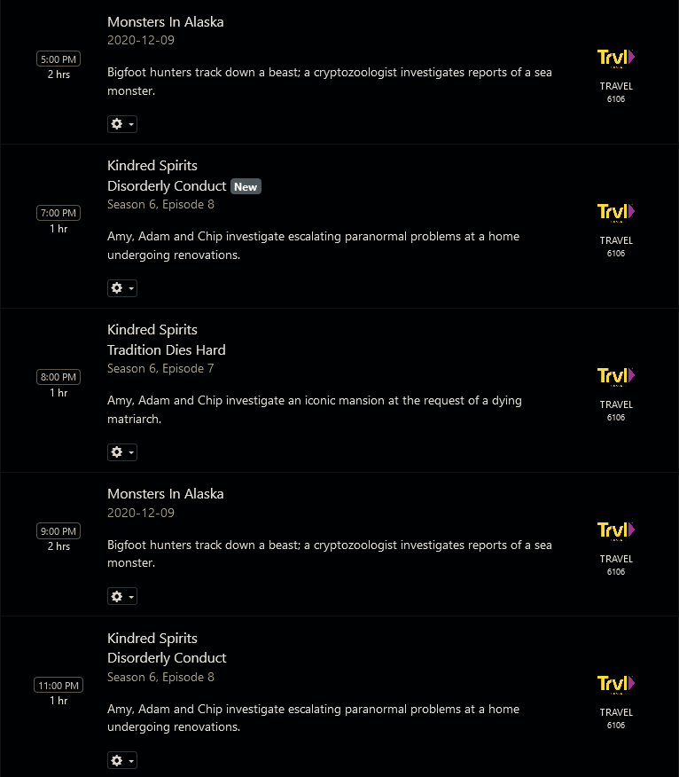 When I look at Travel Channel and Nat Geo Wild in the Channels Guide for this evening (2/5/22), they both show paid advertising programs airing in prime time. But when I check the schedule via Youtube TV (my provider) or at those channels' websites, I see the normally scheduled programming in the guides. I have seen similar behavior on some past Saturday evenings, and observed that all of the guides were correct: the Channels TVE feed showed Infomercials while the other avenues delivered the regularly scheduled programming.
