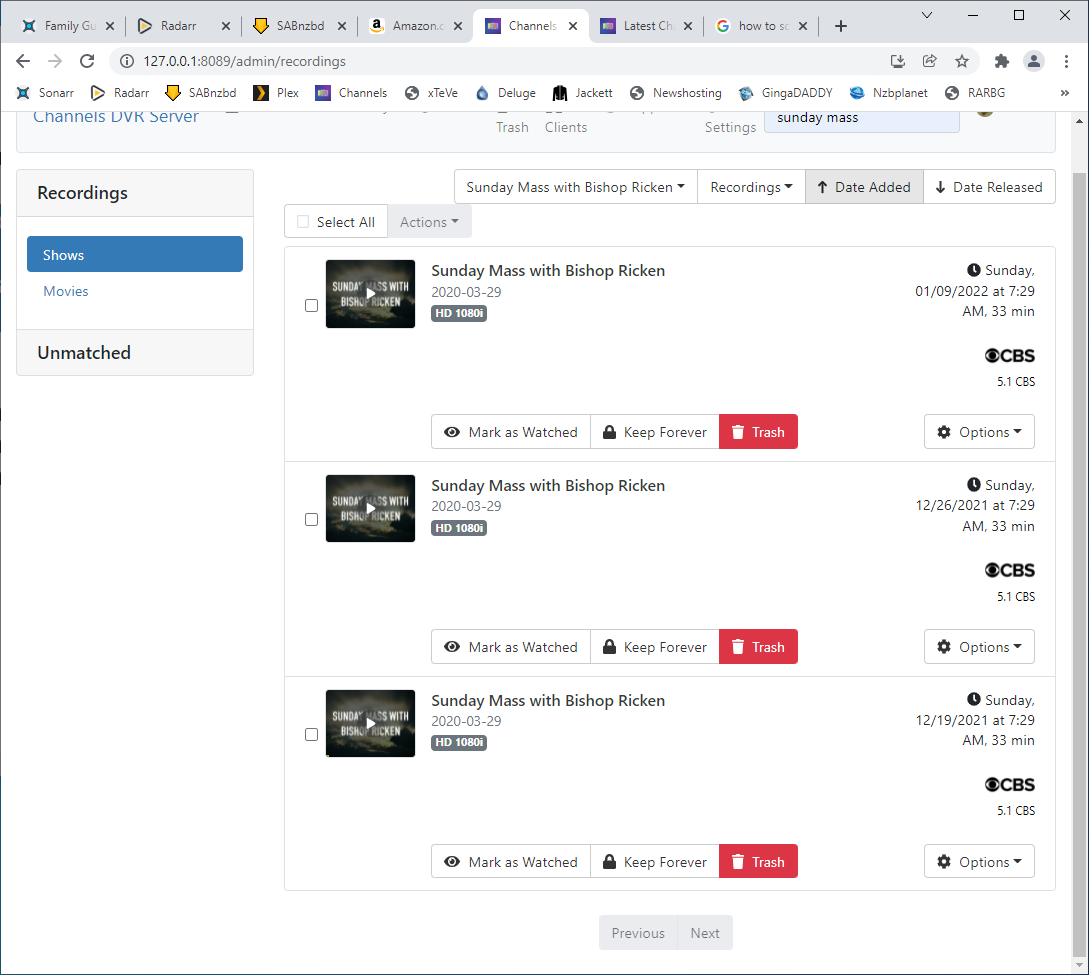 I have a local broadcast that I record every week. The show does get properly listed at its scheduled time. And will record at its scheduled time. But once its recorded, it will not que up again for the next scheduled airing. Basically it is Sunday mass, but it is always dated 2020-03-29. That must be the original first broadcast date. Anyway, I have made a pass, but once it has been recorded, Channels always thinks its the same show already recorded and I have to manually que it up to record the next airing. So I basically would like Channels to recognize its a different show, or at least give an option to always record. And no, selecting ALL episodes in the pass does not work.