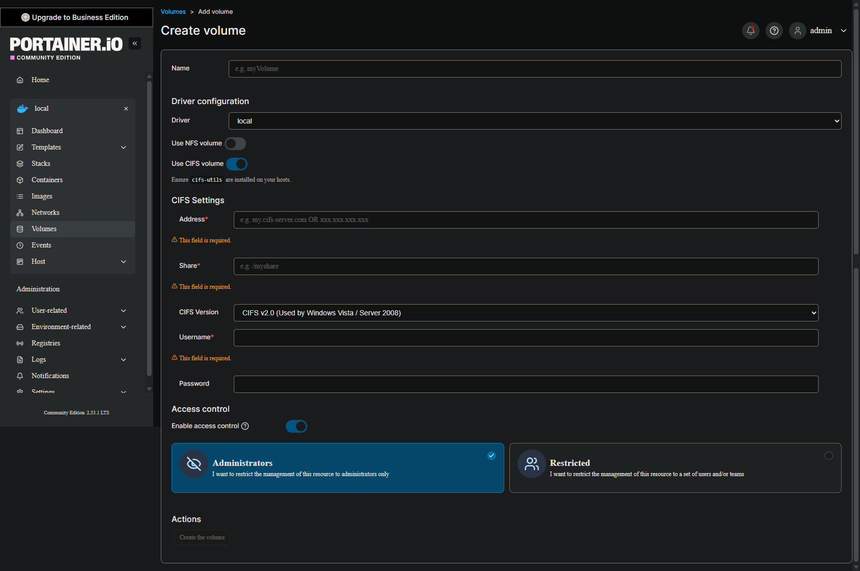 OK, so if you have Portainer installed, and have the Samba shares created and added in Portainer-Volumes -- you should be ready to roll.