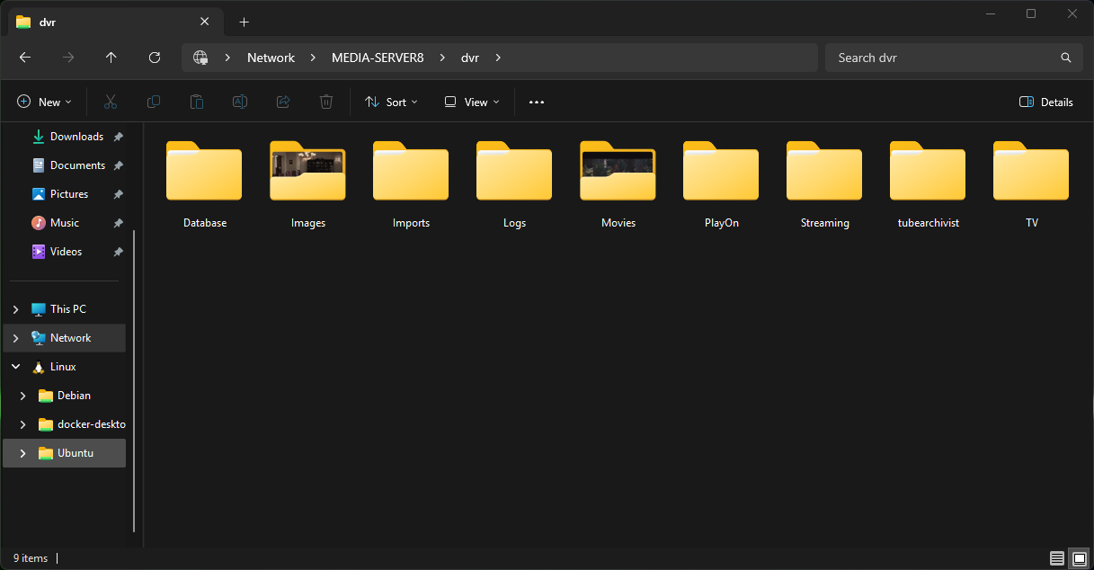 Folders with the names Database, Images, Imports, Logs, Movies, Streaming and TV should be visible...