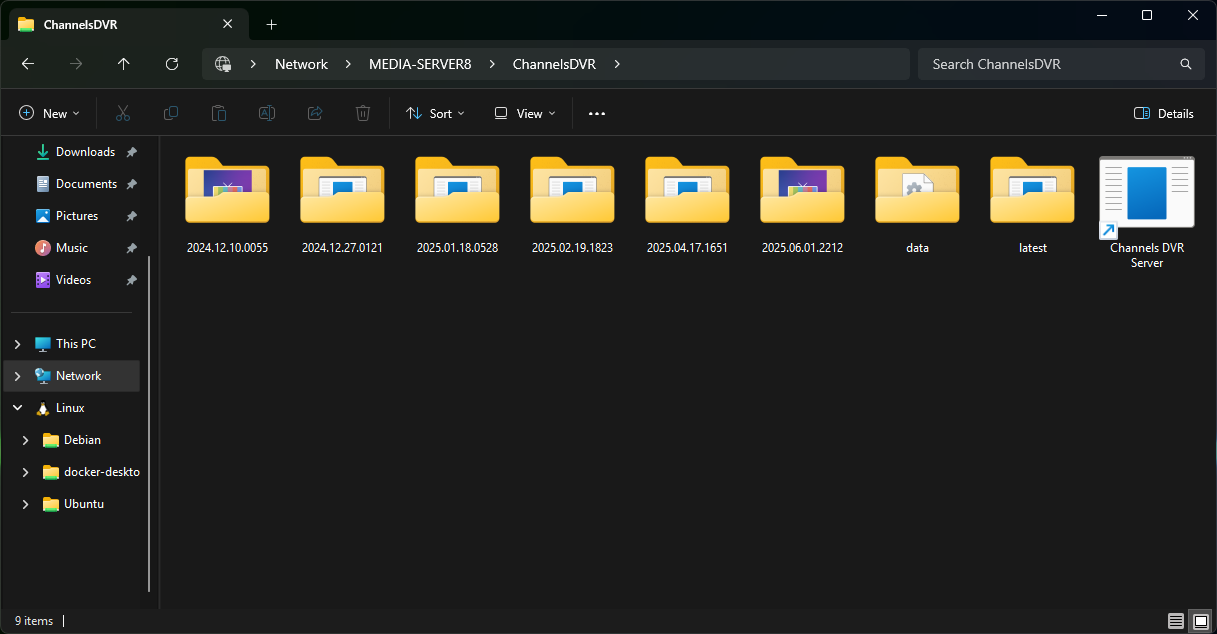 Checking that your selected Channels DVR server's data files (/mnt/-8089) are accessible:
