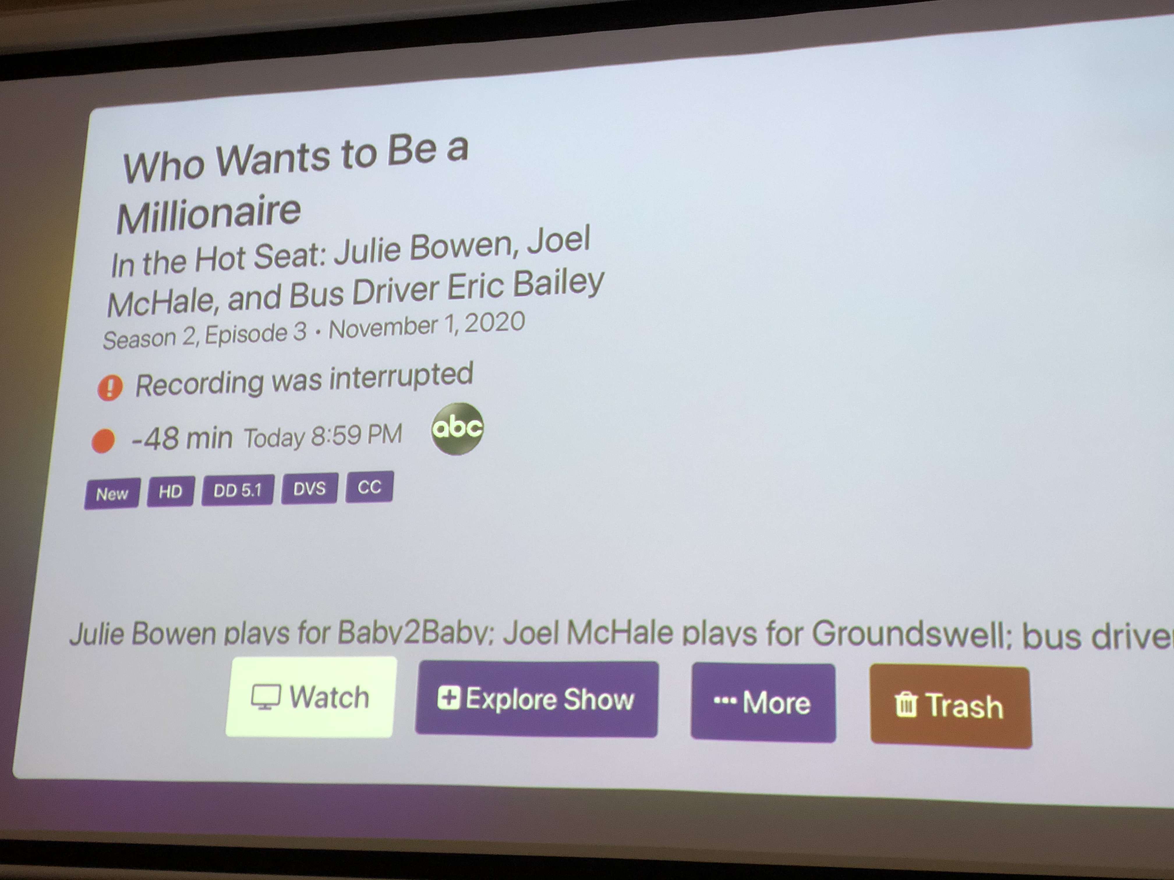 It also didn’t record the correct show. It recorded supermarket sweep instead of who wants to be a millionaire.