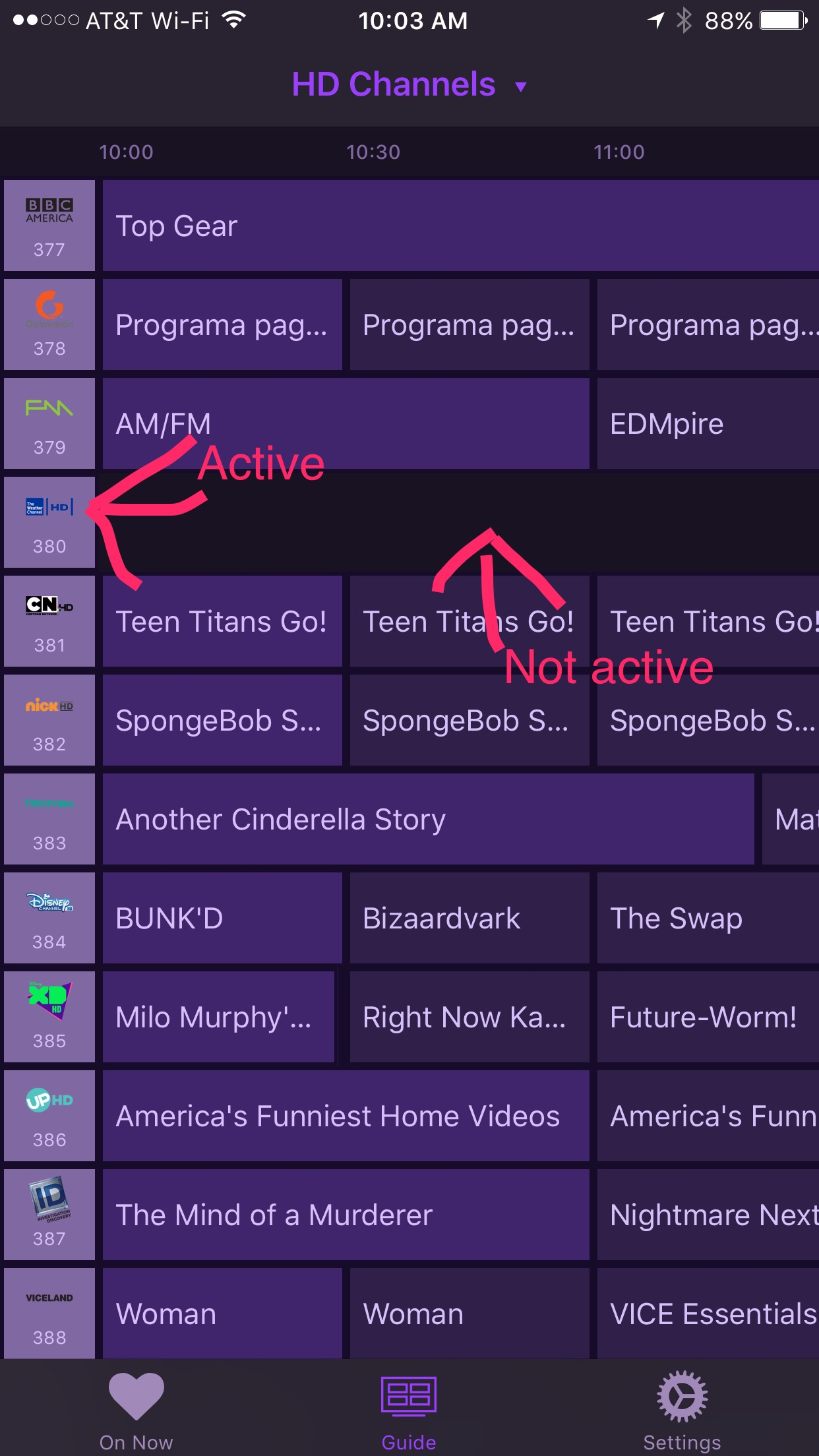 The âUnknownâ in the guide looks great. I tried several of the entries and when I select the program, the app does not want to tune to that channel. When I select an âUnknownâ program, nothing happens. I did verify that I could tune to the channel via On Now.