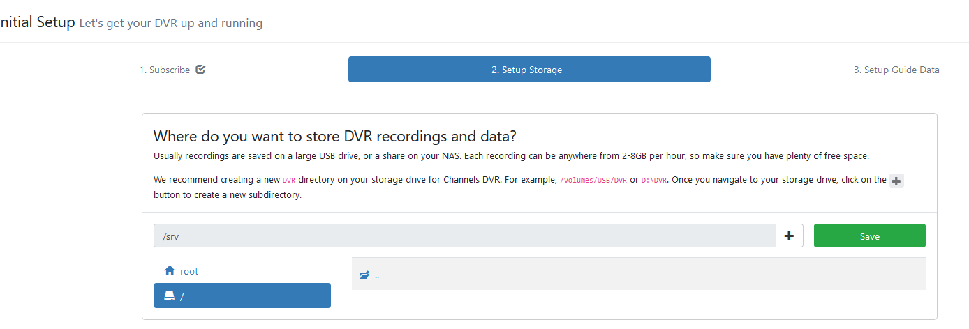 When I log into my newly created channels-dvr server, I get asked to pick a storage location. It does not let you pick a directory more than one level deep. And why do I need to set this again if I've already set it via the docker setup?