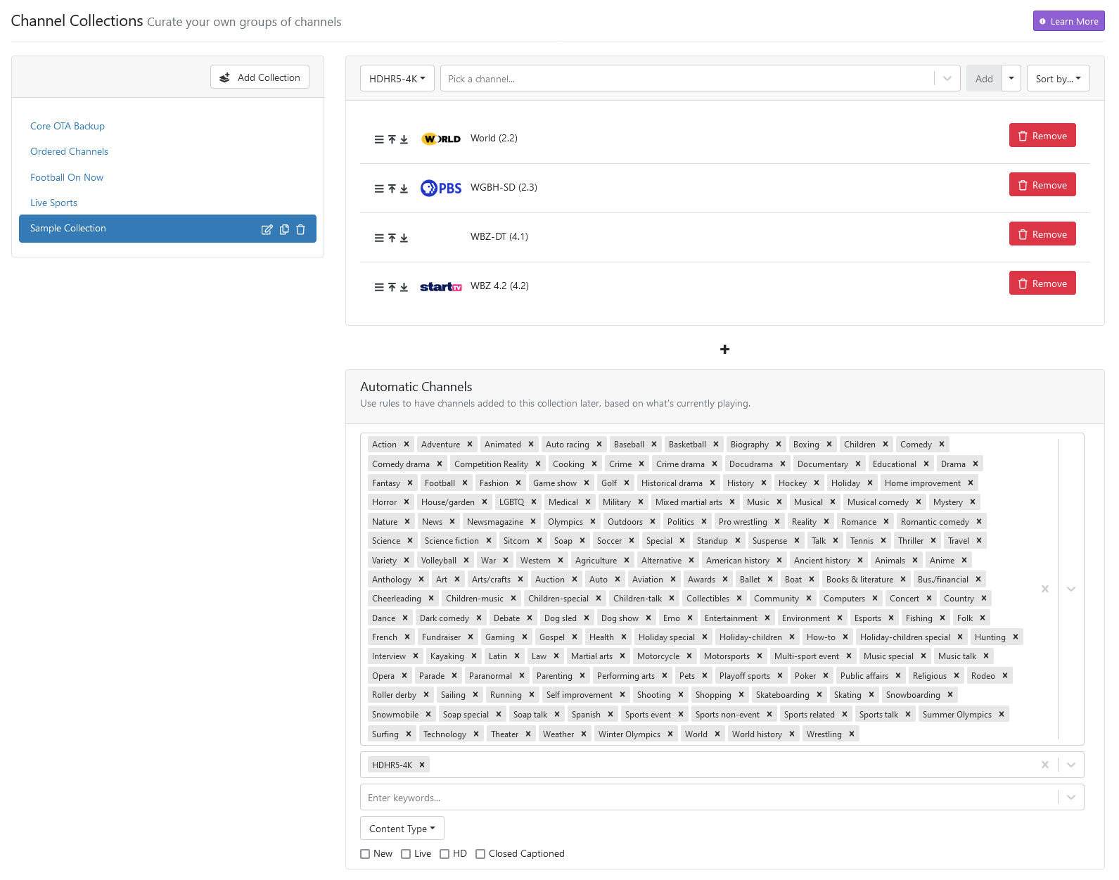 I manually added the OTA channels and then for the automatic I put in every category and excluded the HDHR as a source: