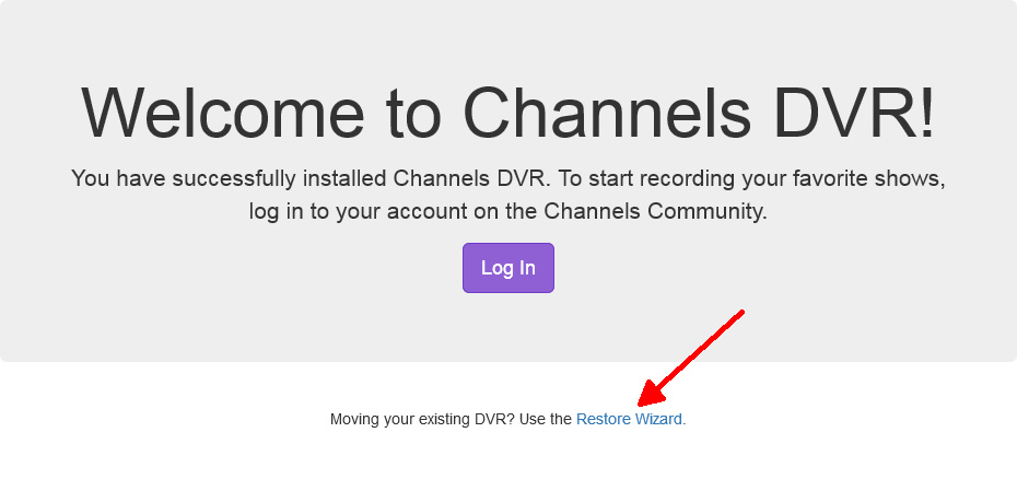 4. Go to the Channels DVR web UI and select the Restore Wizard link