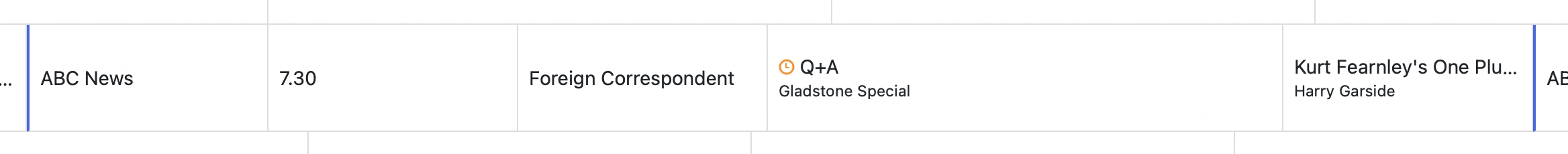The screenshot below shows the relevant section of the guide: I have extended it further to show that it is showing a blue line (New tag) on some episodes, but not others. The "Q+A", and the "7:30" episodes should also be tagged as New.