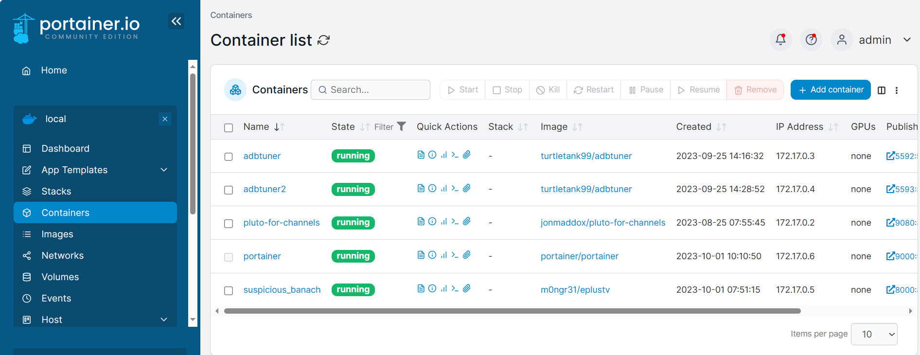 fd9ba2d71bb0 m0ngr31/eplustv "./entrypoint.sh" 58 minutes ago Up 58 minutes 0.0.0.0:8000->8000/tcp, :::8000->8000/tcp suspicious_banach
