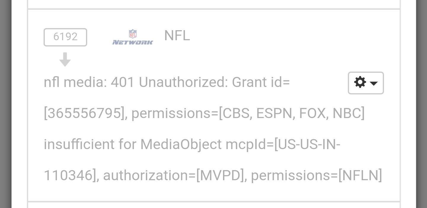 I tried to watch NFL Network this morning and was met with a new error. I hadn't seen it posted before so I figured I would share with the devs. Hopefully it can be fixed