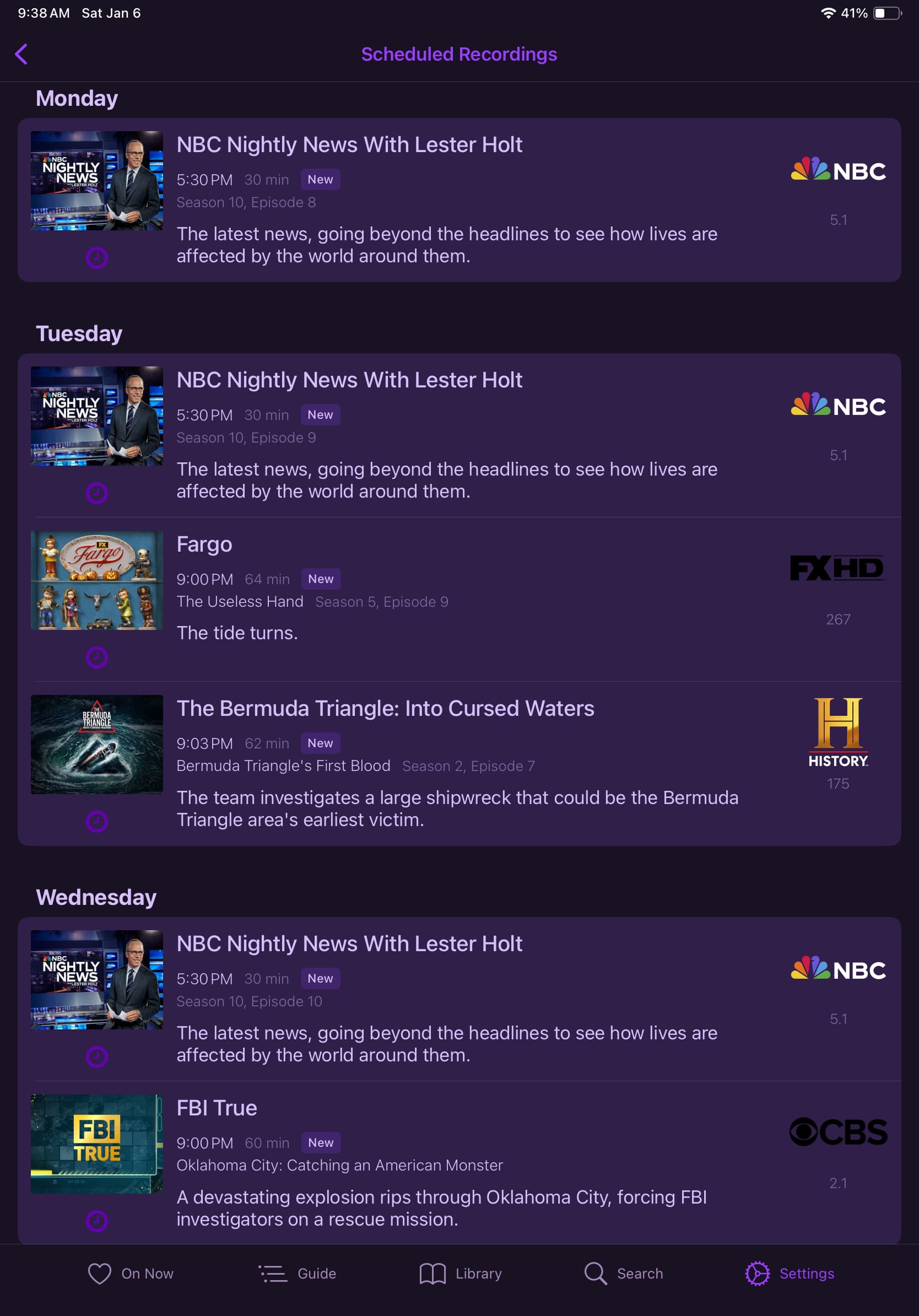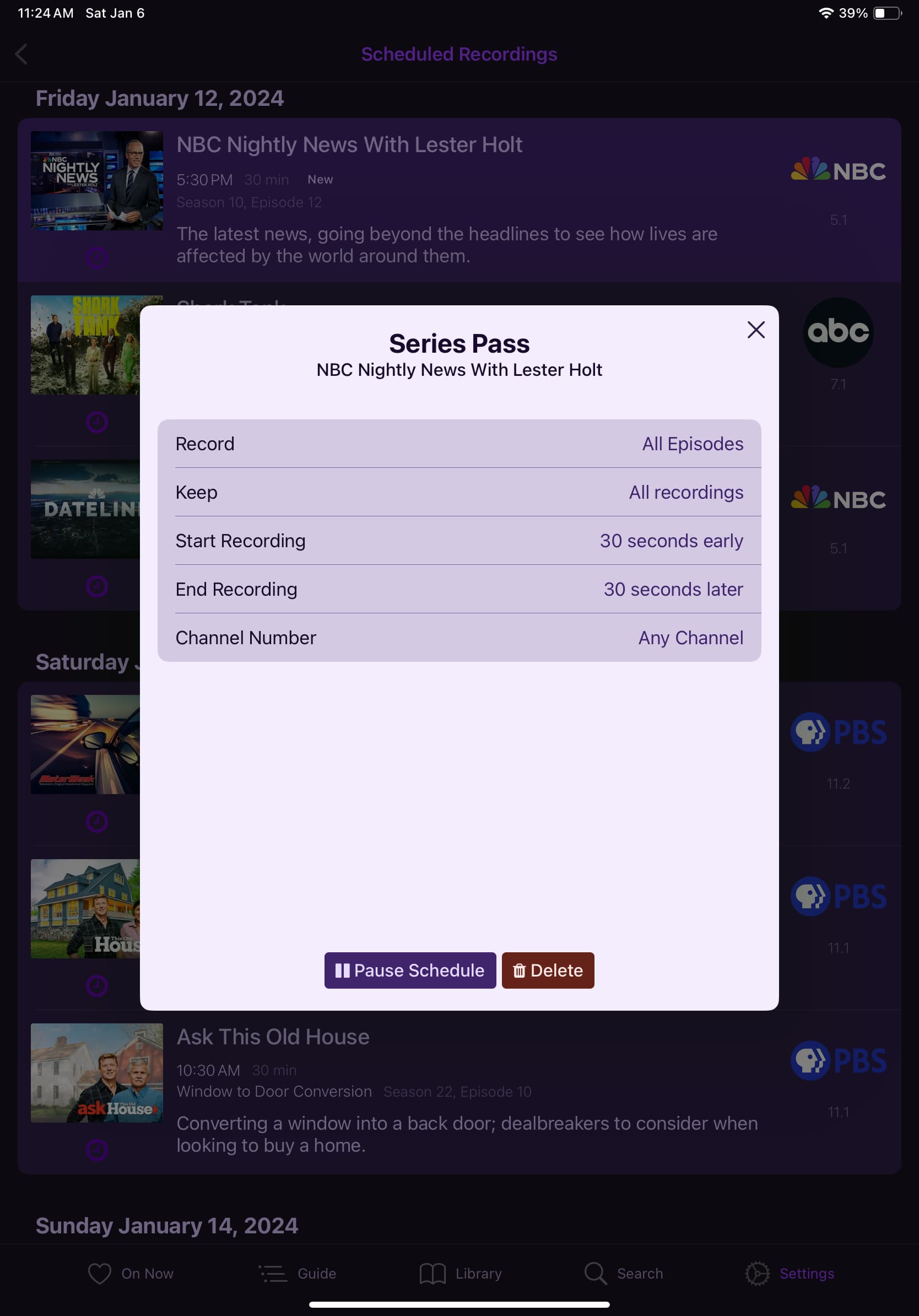 For the past few weeks NBC nightly news is always skipped on Saturdays only. I have re-deleted and re-created the recording pass for nightly news but it's still skips Saturdays only