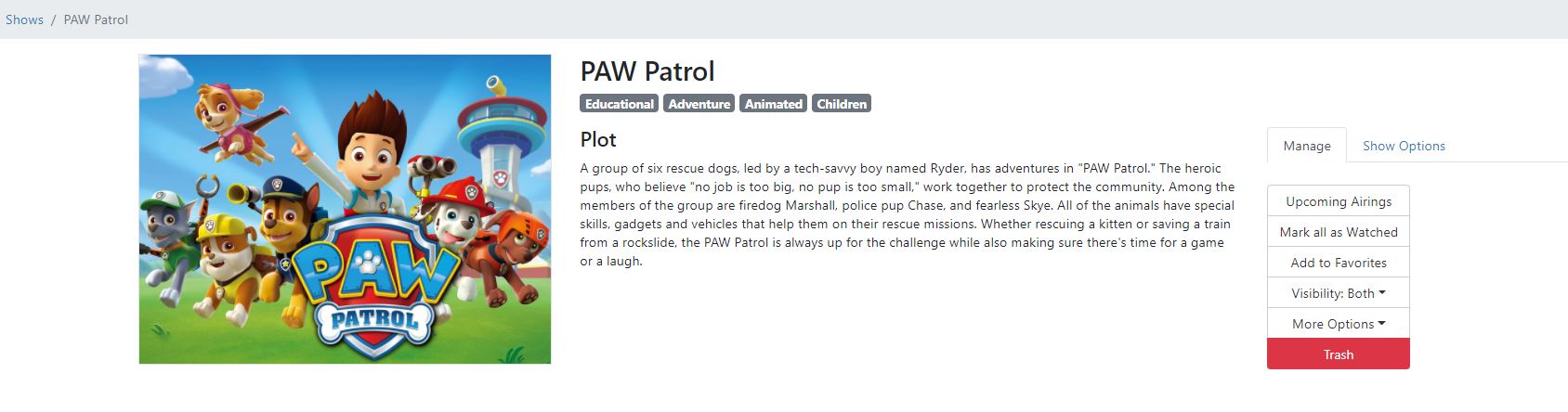 I've been looking into this more. Most of my kids programming does not appear to be showing up in the list of TV Shows. (Paw Patrol, PJ Masks, Curious George, Peppy Pig) If I go to the library view and scroll down to the kids section all of those shows are there. Why would they appear fine in the library tab but not in the alphabetical list in the TV Shows tab? I attached some screen shots. In the alphabetical list you can see Paw Patrol should be listed between Pardon the interruption and Peaky Blinders yet its not there - along with the other shows mentioned.