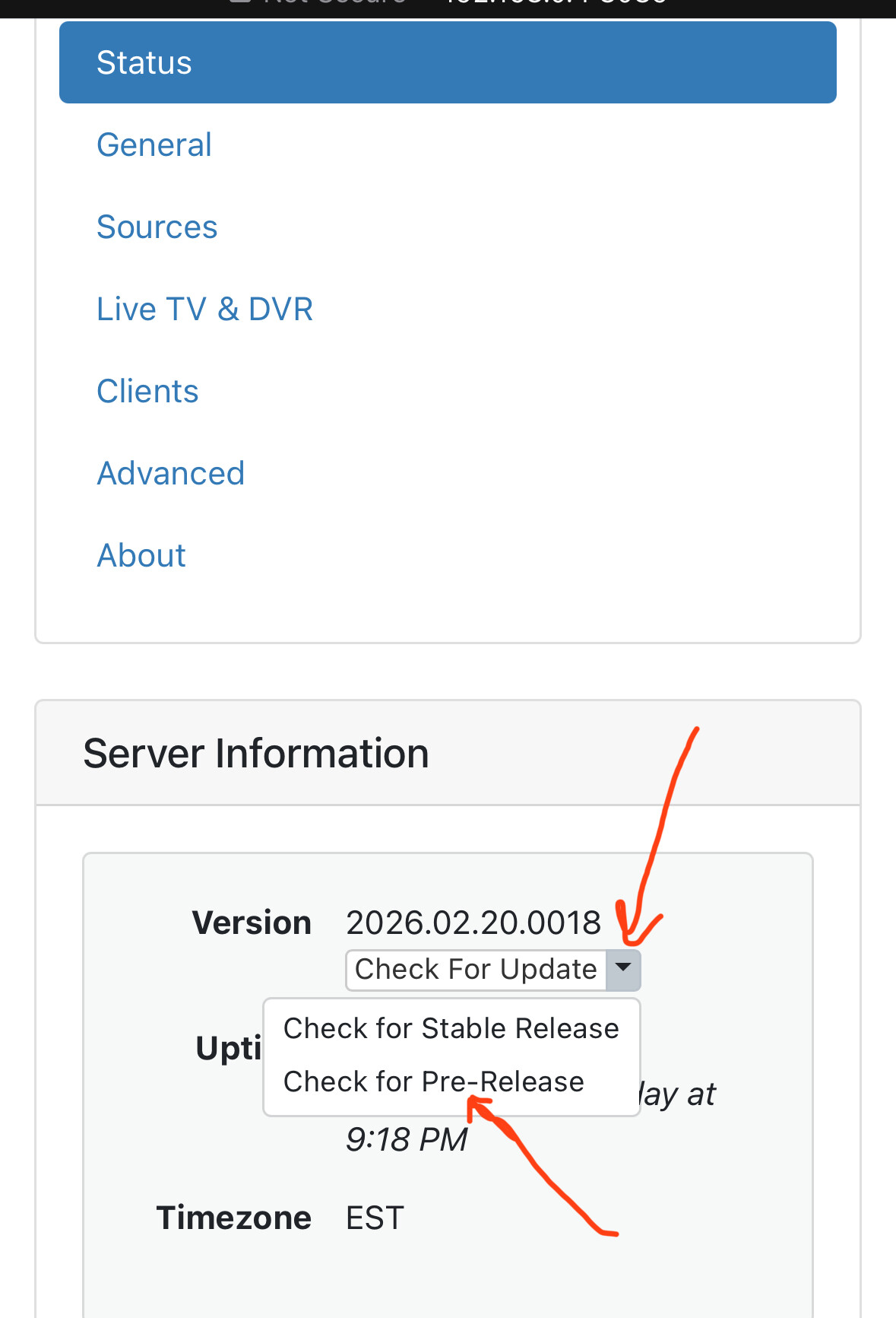 Ah, I understand now. No, that was not the problem. I was able to upgrade the container using the Server Information pull down. After that, it began to work.