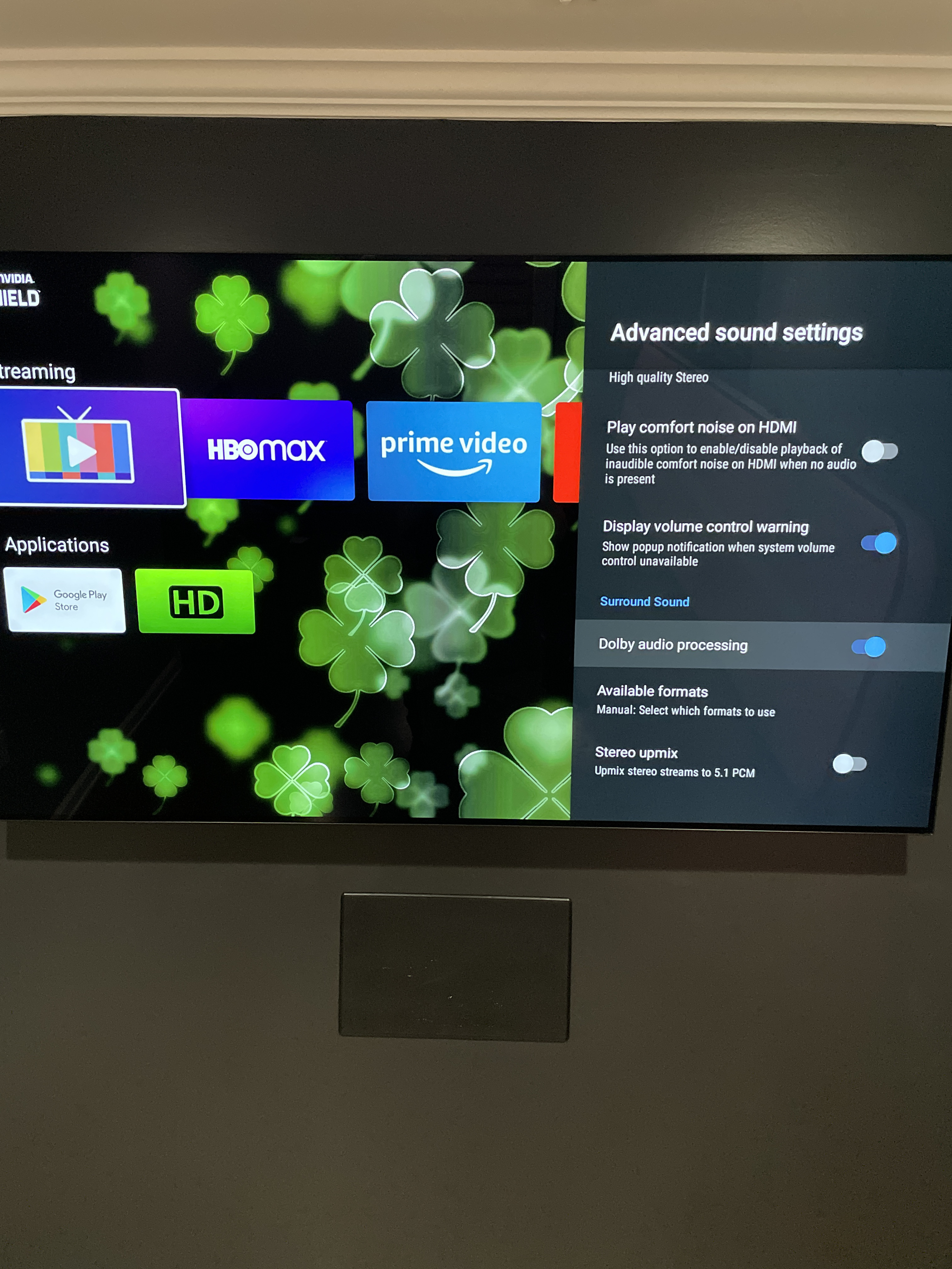 Don’t have a Dolby Processing option. Sonos doesn’t officially support Dolby Digital Plus but you normally get sound if it is used. I’ve tried setting the format option to manual and using plus on and off and neither changes anything. Using off, auto or manual doesn’t give me surround sound from the Channels app.