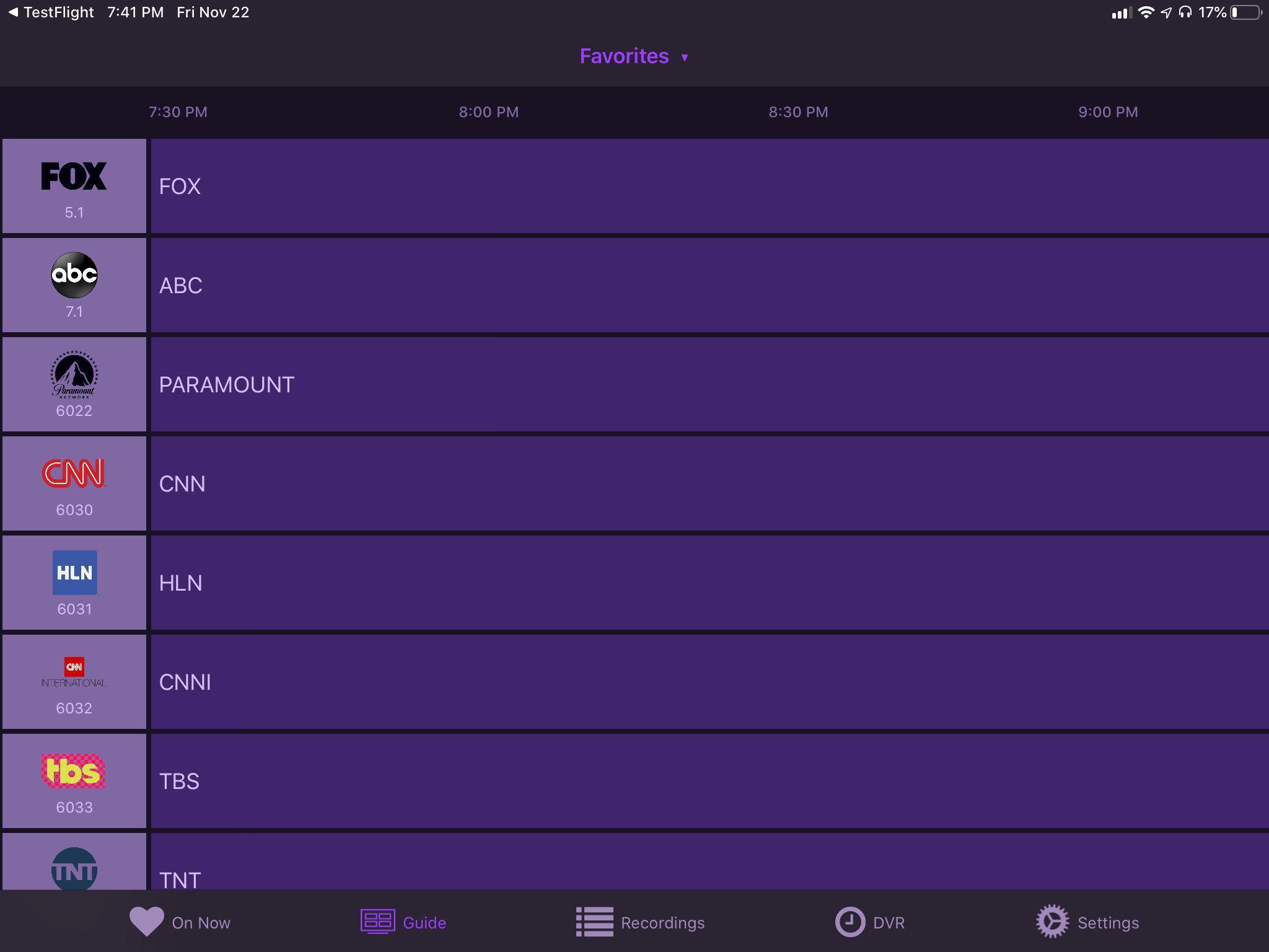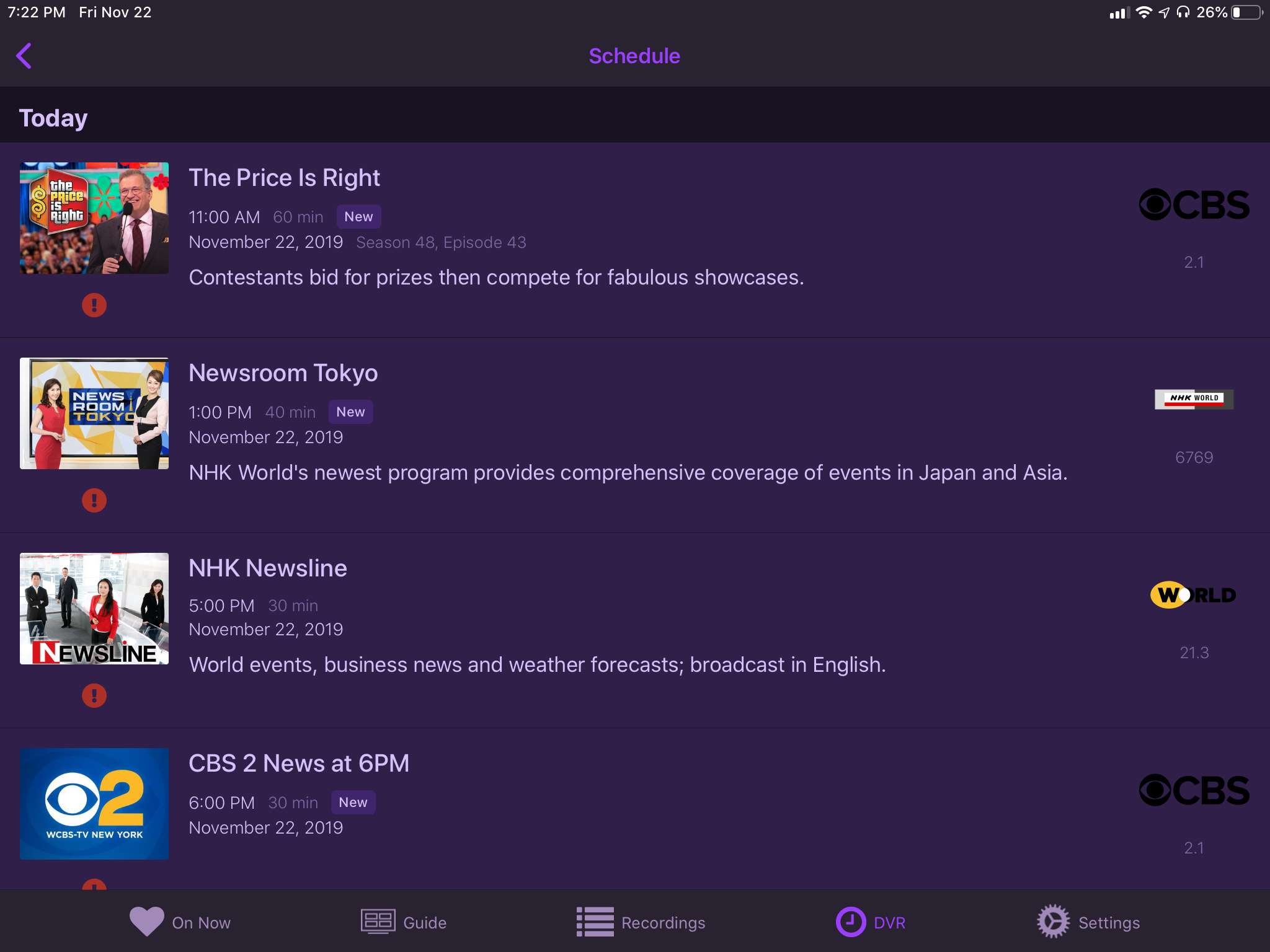 I don’t see any detailed programming guide. I can watch DVR recordings up to about an hour ago but nothing else shows up.