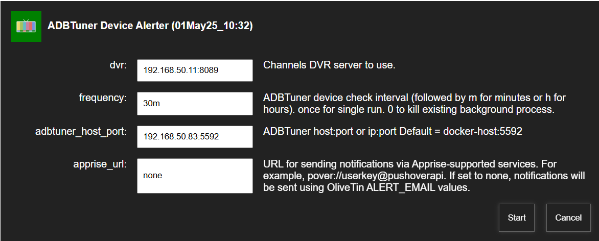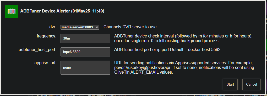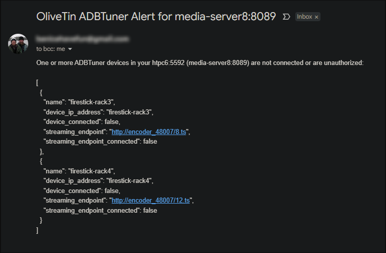 New bnhf/olivetin:latest (aka bnhf/olivetin:2025.05.01) pushed today with support for E-Mail or Apprise notifications if any of your ADBTuner device connections have failed (either encoders or streaming sticks). More details here: