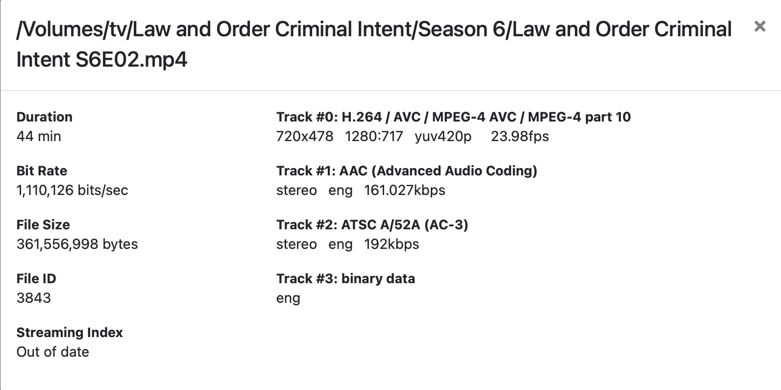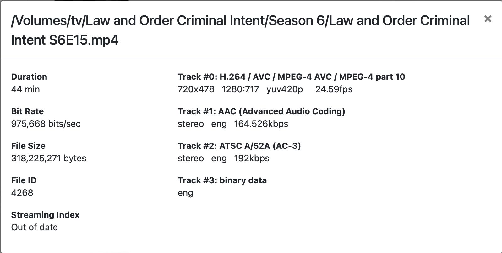 File properties appear identical. I've tried removing, reindexing, and even recreating the episode from original disc. So far the issue persists.