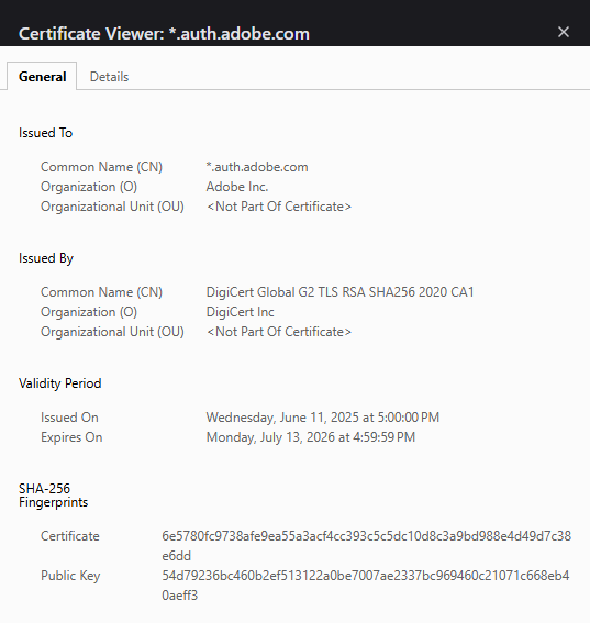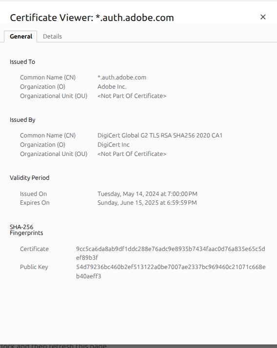 2025/07/25 17:31:44.715666 action=requestor err=Get "https://sp.auth.adobe.com/adobe-services/config/ABC?noflash=true": tls: failed to verify certificate: x509: certificate has expired or is not yet valid: current time 2025-07-25T17:31:44-05:00 is after 2025-06-15T23:59:59Z