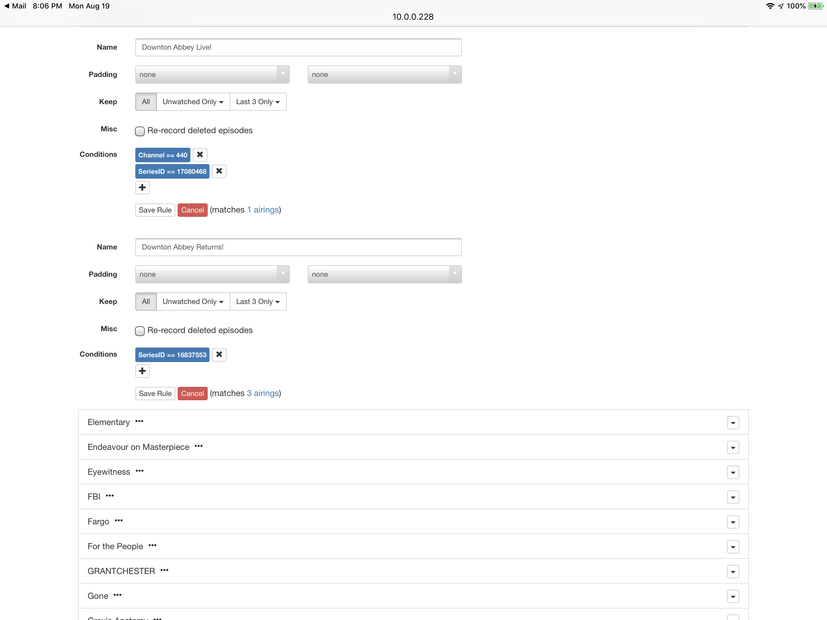 To let you know, I was unavailable earlier today, to even attempt adding DIY channel, rerunning guide and then setting the recordings on a Pass. All of which would be “first time” for me...anyway, so of course, all would record. Hence, no point in setting up on my mine (we probably have 2-3 hour diff and those entries, if I follow your screenshot..might possibly have required to me to set up by 6AM est/edt. Just “no”, too much pain, not enough gain.