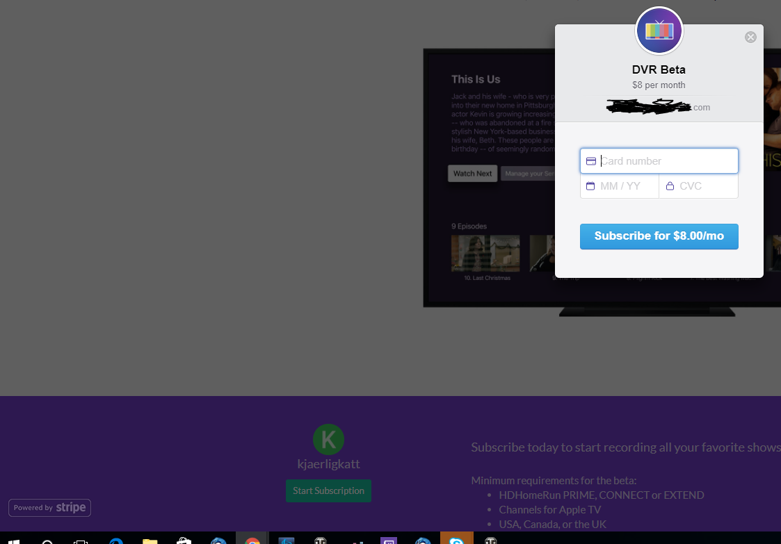 When selecting to sign up for the DVR service, we are presented with an input form for details of a credit card. I have the following questions