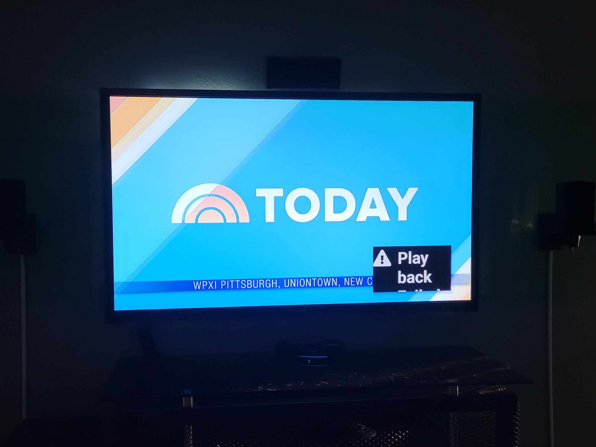 When scrolling through the guide with the little video window going, I double clicked on the "Today Show" which I record to launch it maximized. The app did not handle it properly. It popped up a large black 'playback' error screen, I hit the back button and it shrunk down and there was the prompt to ask me if I wanted to 'watch the recording or watch live'.