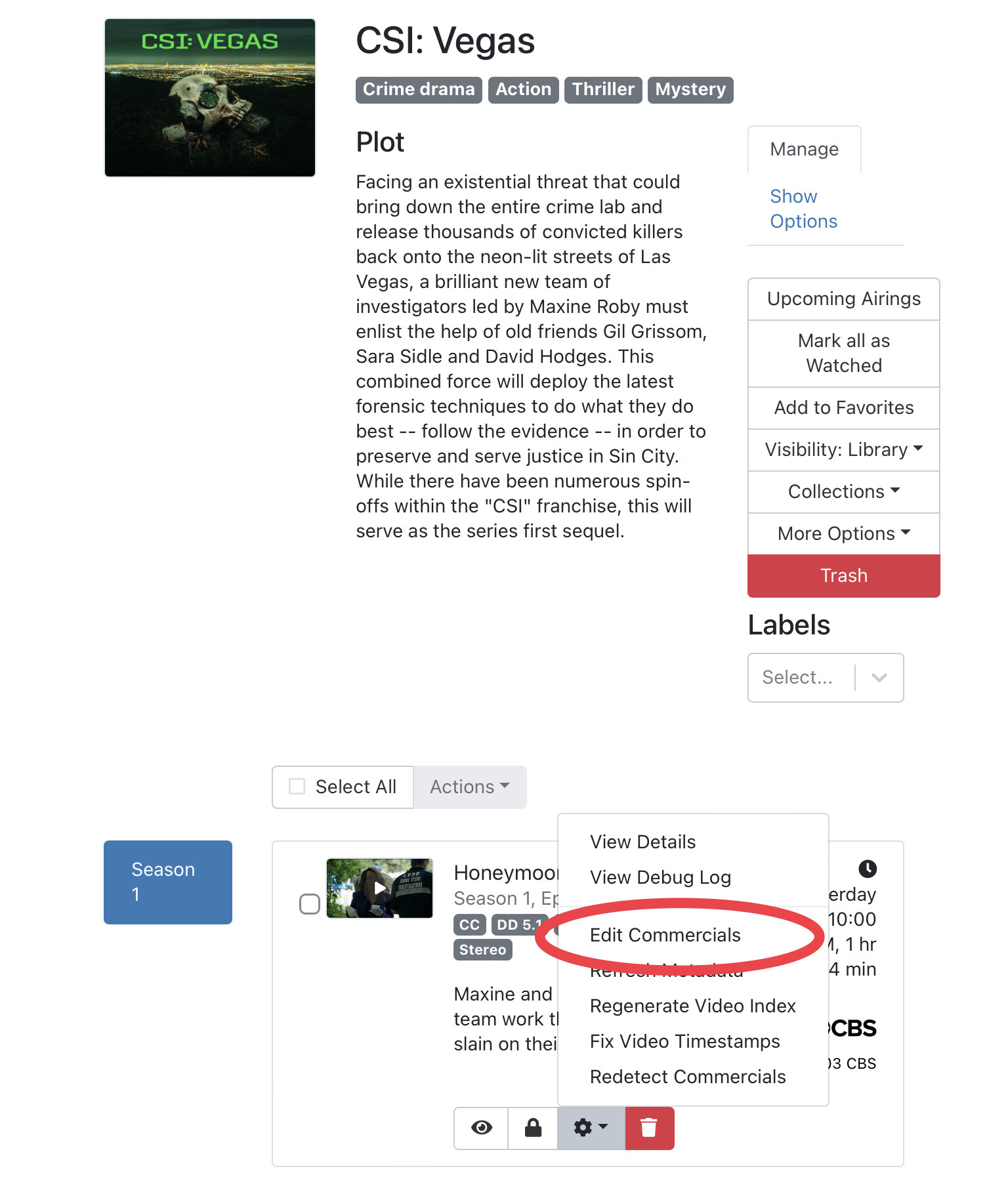 The Verify Commercials action opens an editor that allows you to adjust where the commercial markers are. You then can mark it as verified and Channels trusts them a bit more.