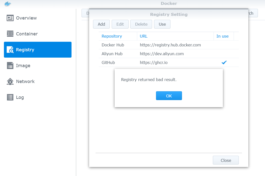 That is the problem. The Synology Docker can not connect to GitHub. I am looking for how to install it.