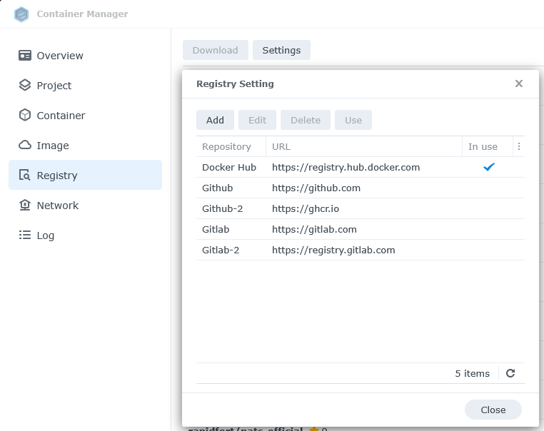 You can Add registries in Container Manager > Registry > Settings