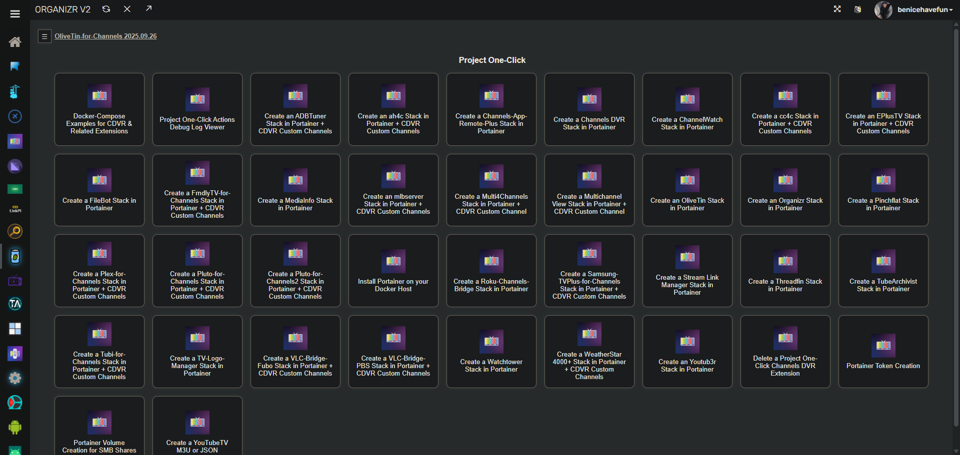 Install Portainer and OliveTin-for-Channels, and you'll have every Channels-related project a click away using Project One-Click: