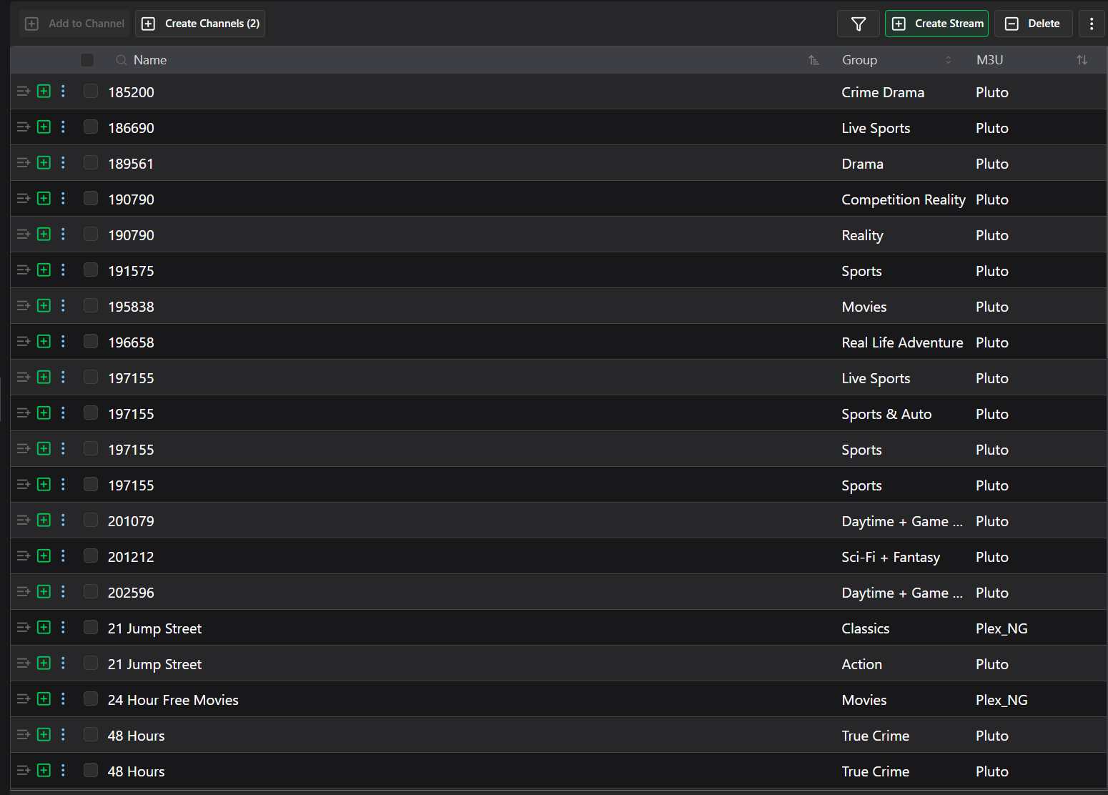 Not sure if this is specific to the m3u aggregator I use (Dispatcharr), but when I import the M3U from this docker, I get the following: