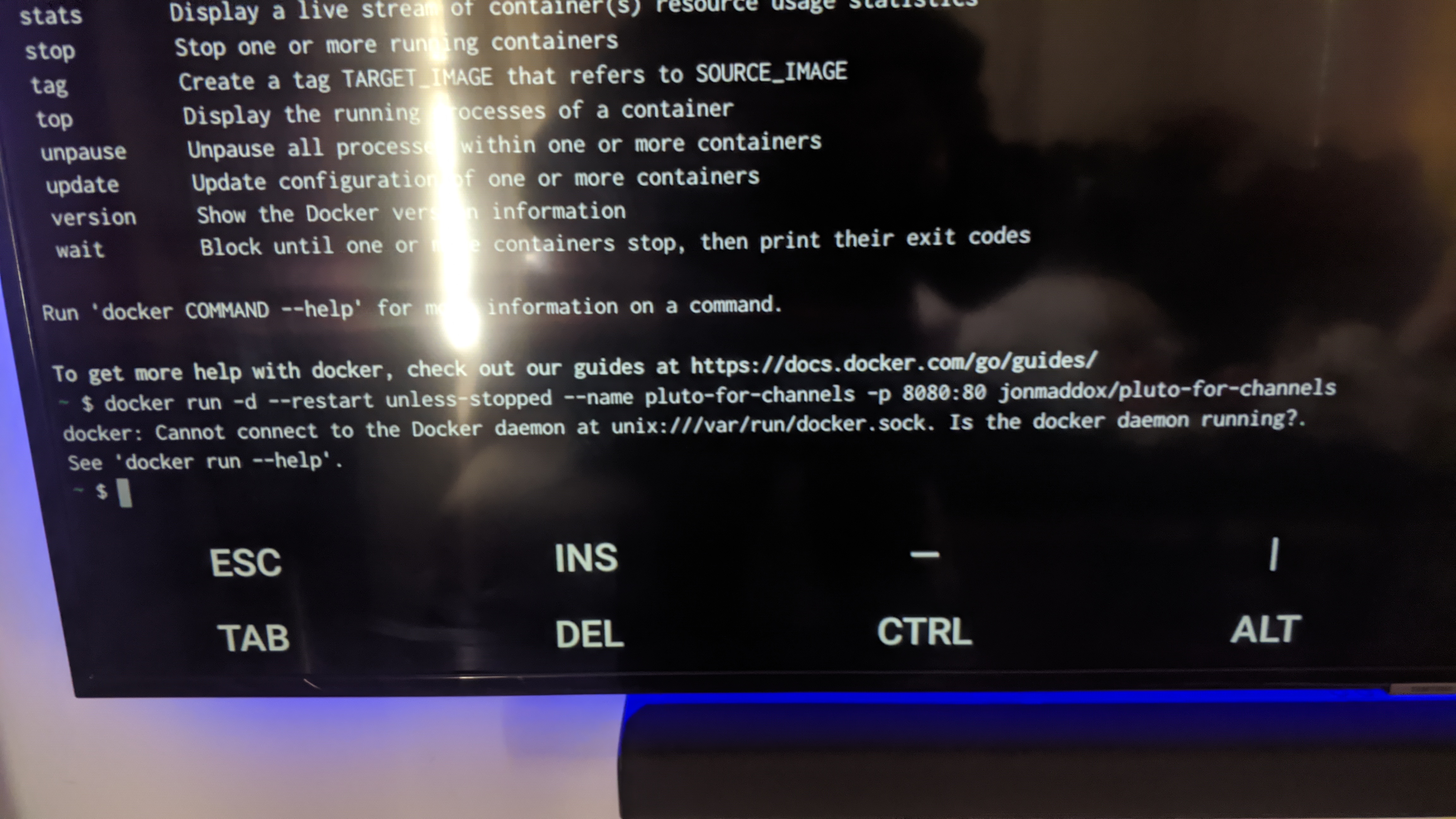 EDIT - I haven't even gotten the container to the Shield's filesystem, and it seems maybe docker isnt running? I'm not sure but I think this will work for the PlutoTV container on Shield Pro if anyone would like to help.