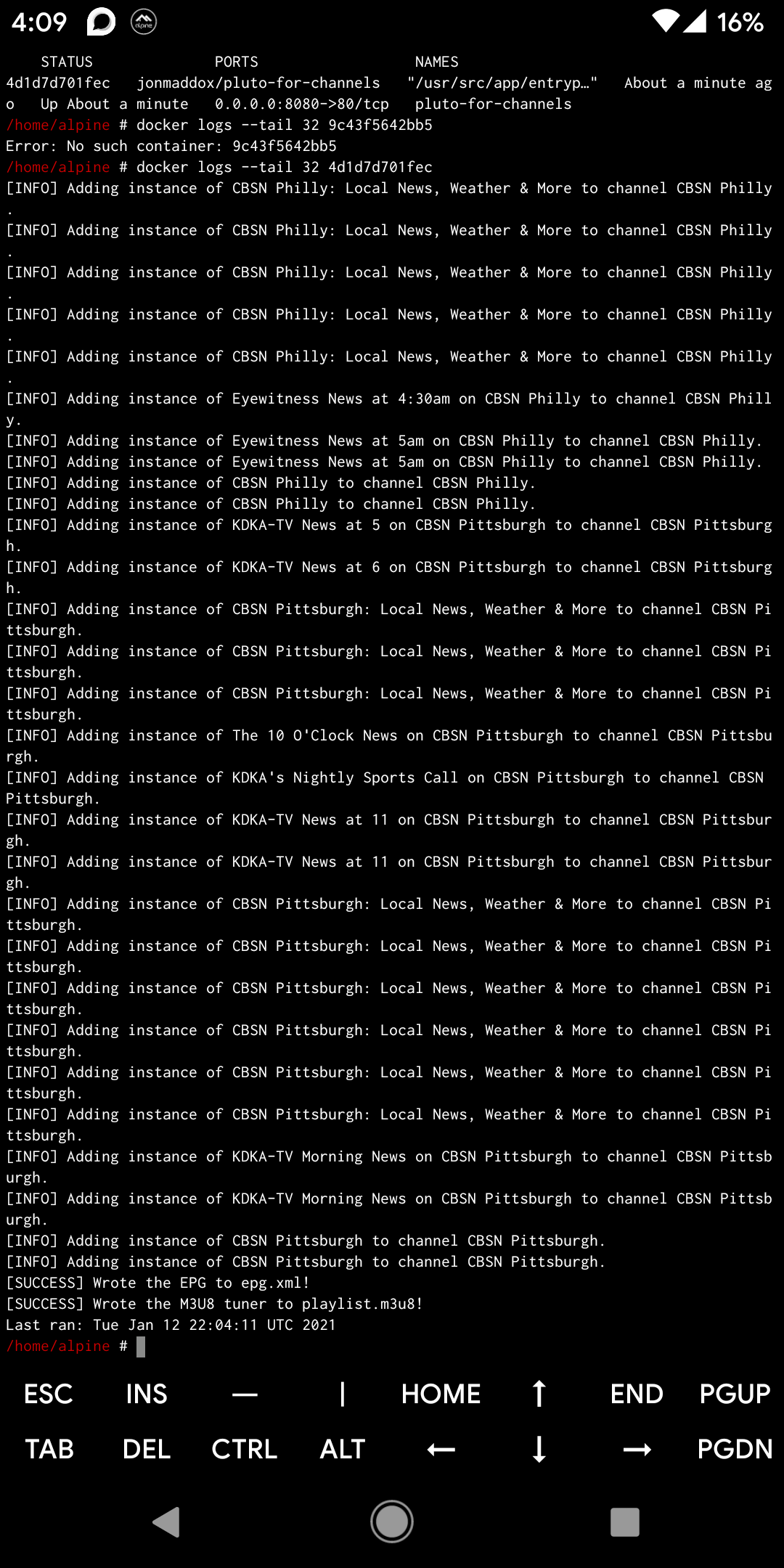 docker logs --tail 32 pluto-for-channels