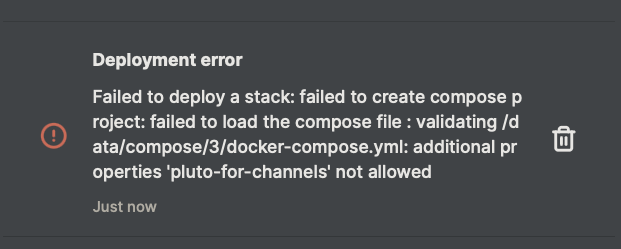 I did, but deleted it. and I changed the name in the compose to be different, that's what I did before. container_name: pluto-for-channelstest