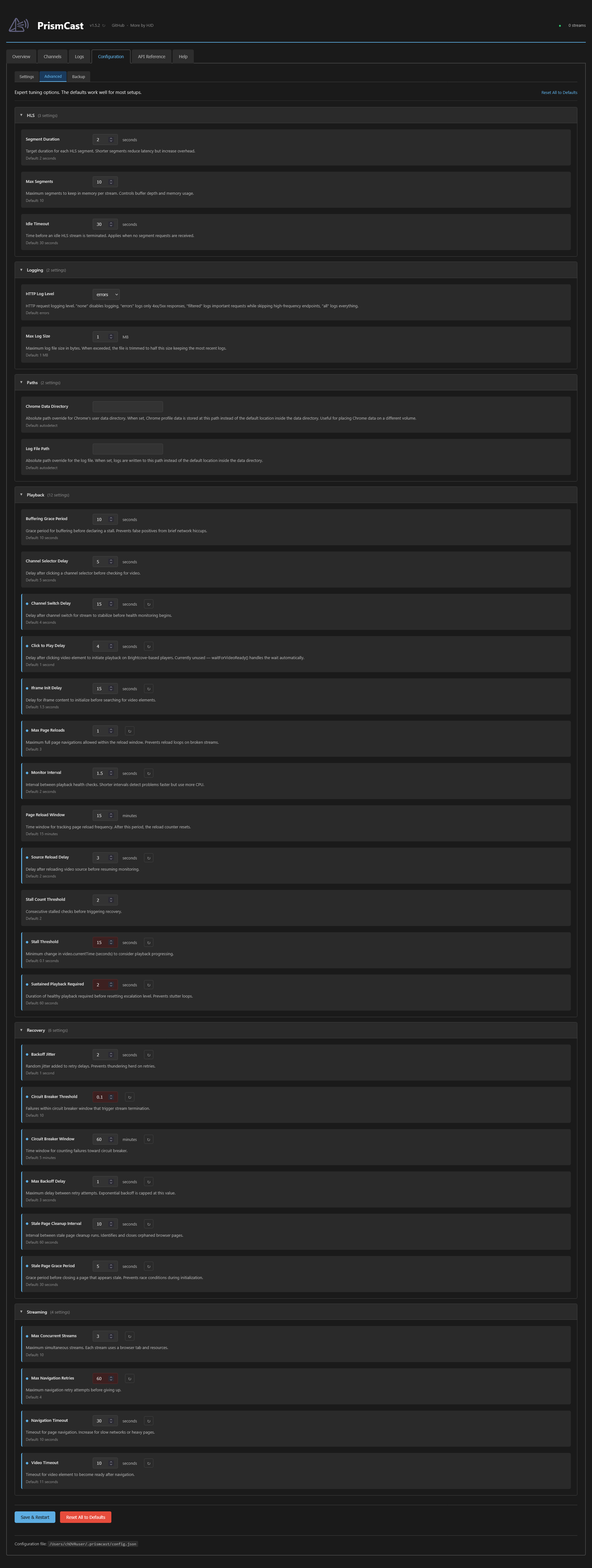 When you stream a channel (using the PrismCast channel playlist in VLC or CDVR), the output stream starts before the video is stable. You can see the browser page starting the stream. I haven't looked at every single one, but on average the first 1.5 - 5 seconds of the stream. This results in changes in frame rate and presentation timestamps (PTS) at the start of recordings. Has anyone experienced this and know of a setting to delay the stream output until its stable?