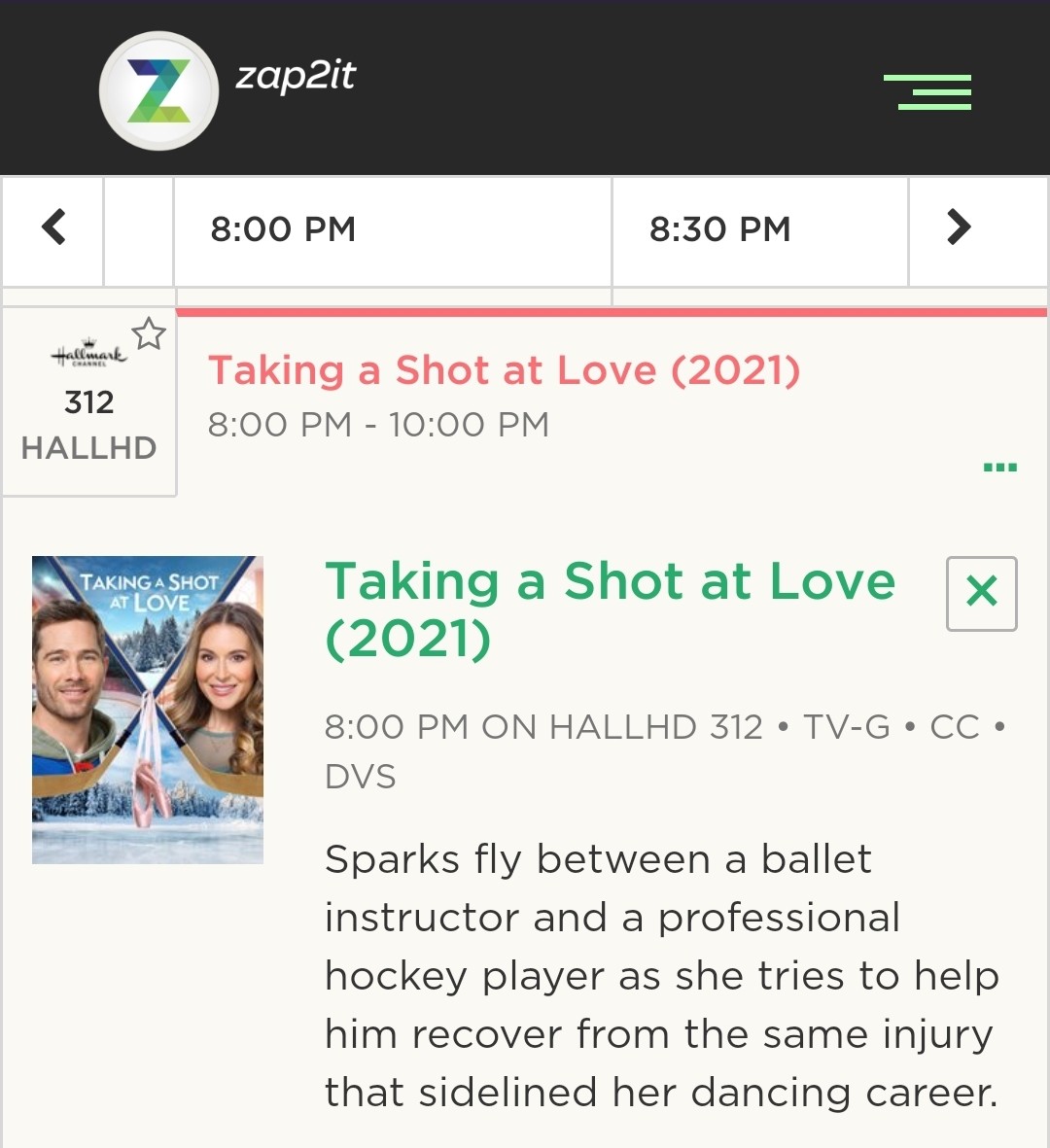 By the way, I just searched the guide now and "Taking a Shot at Love" is scheduled to air on Monday, 01/17/2022 at 6 PM.