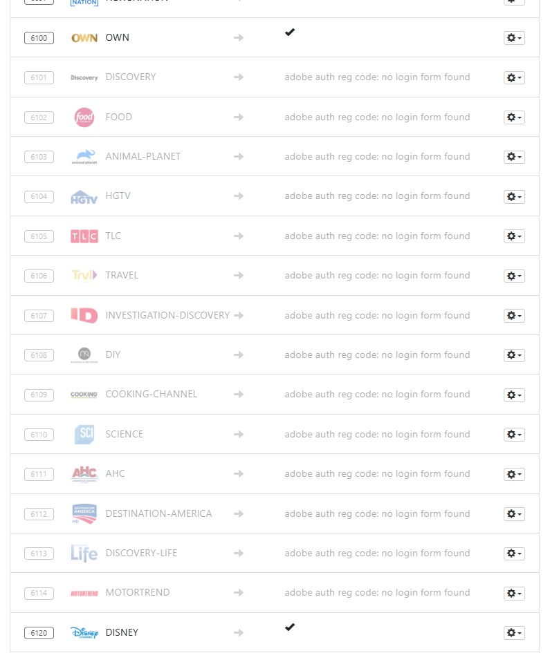 Failed to start stream for ch6110: TVE: adobe auth reg code: no login form found