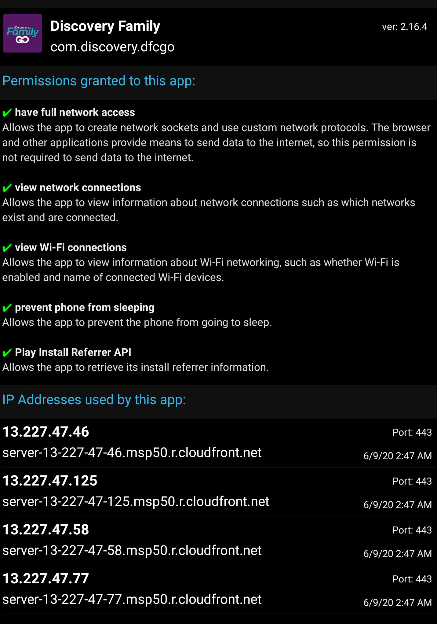 I found a app that logs connections of apps. there is 4 ip address and what it resolves to listed, after logging in with Philo creds and launching live tv stream.
