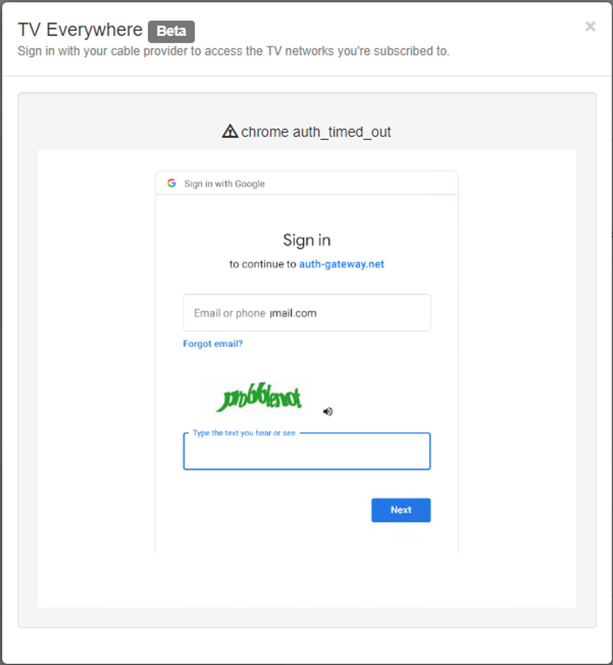 Iād try logging into your google account from another device in the same location. The captcha is probably a one-time extra security step, so if you complete it on another device that may prevent it from appearing for Channels.