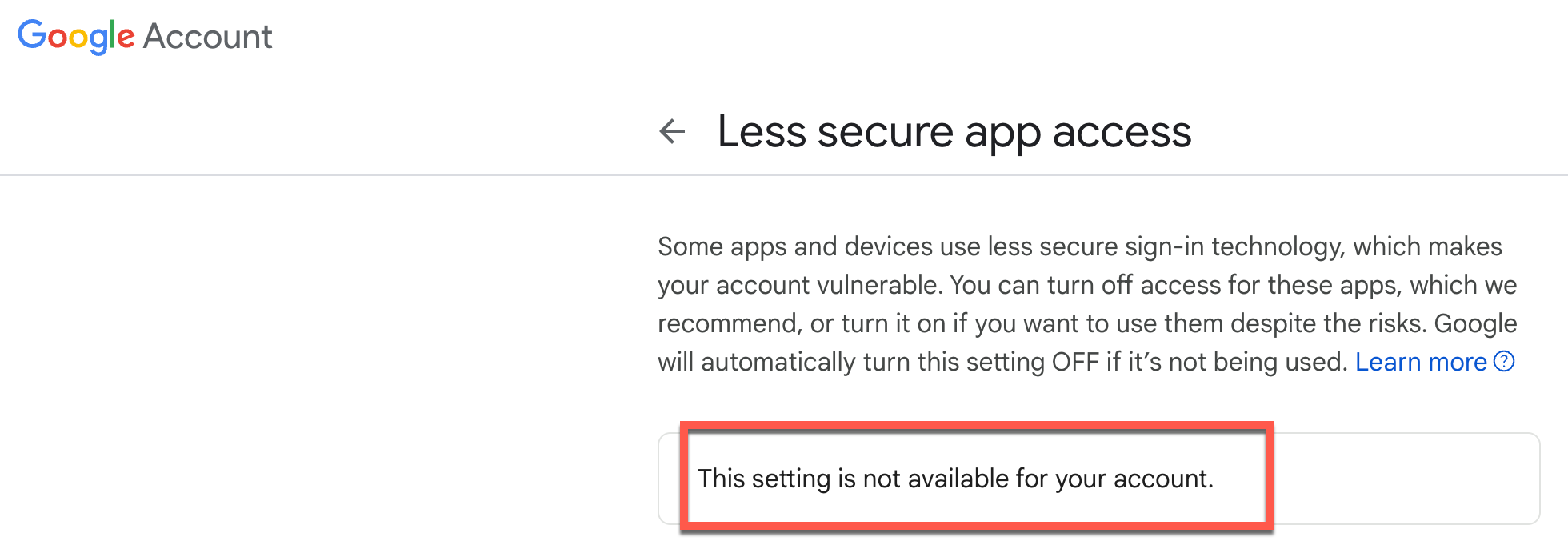 " If an app or site doesn’t meet our security standards, Google might block anyone who’s trying to sign in to your account from it. Less secure apps can make it easier for hackers to get in to your account, so blocking sign-ins from these apps helps keep your account safe."