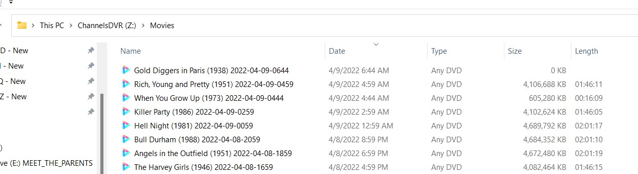 I record a lot of programs from TCM. Many times, the movie ends but the recording continues until the alloted time on the guide. At this point, it shows 0 in size of the recording in my movie folder. I don't think my computer folder shows the movie size until the recording stops and is completed.