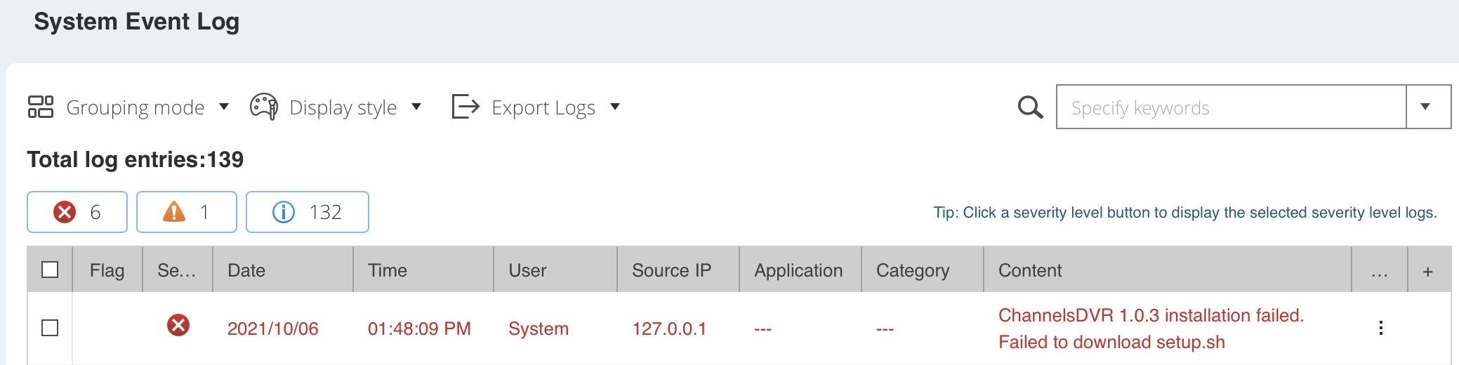 I have a QNAP TS-253D which I had to reinitialize. When I tried to install the Channels DVR package, I got the following error message: