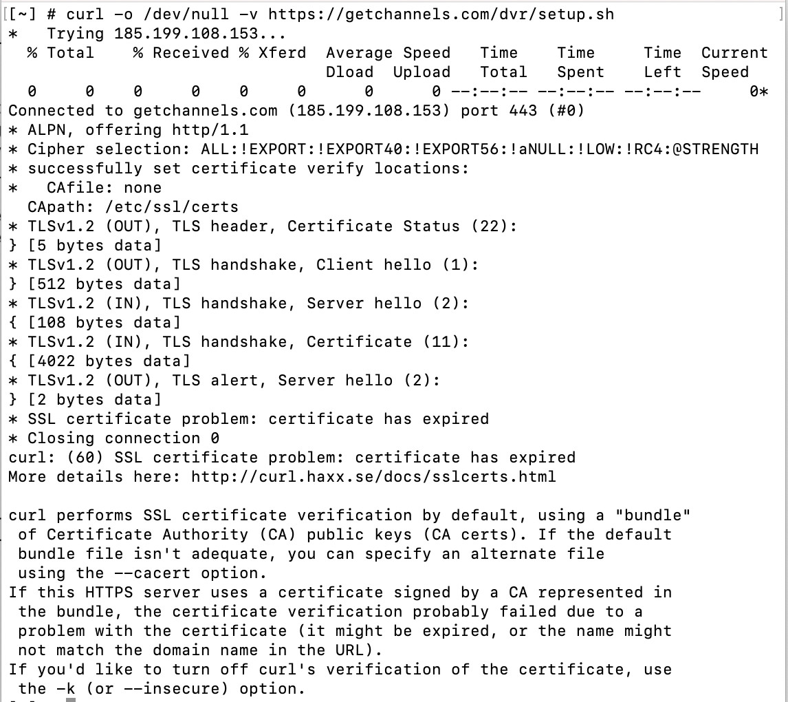 ChannelsDVR 1.0.3 installation failed. Failed to download setup.sh