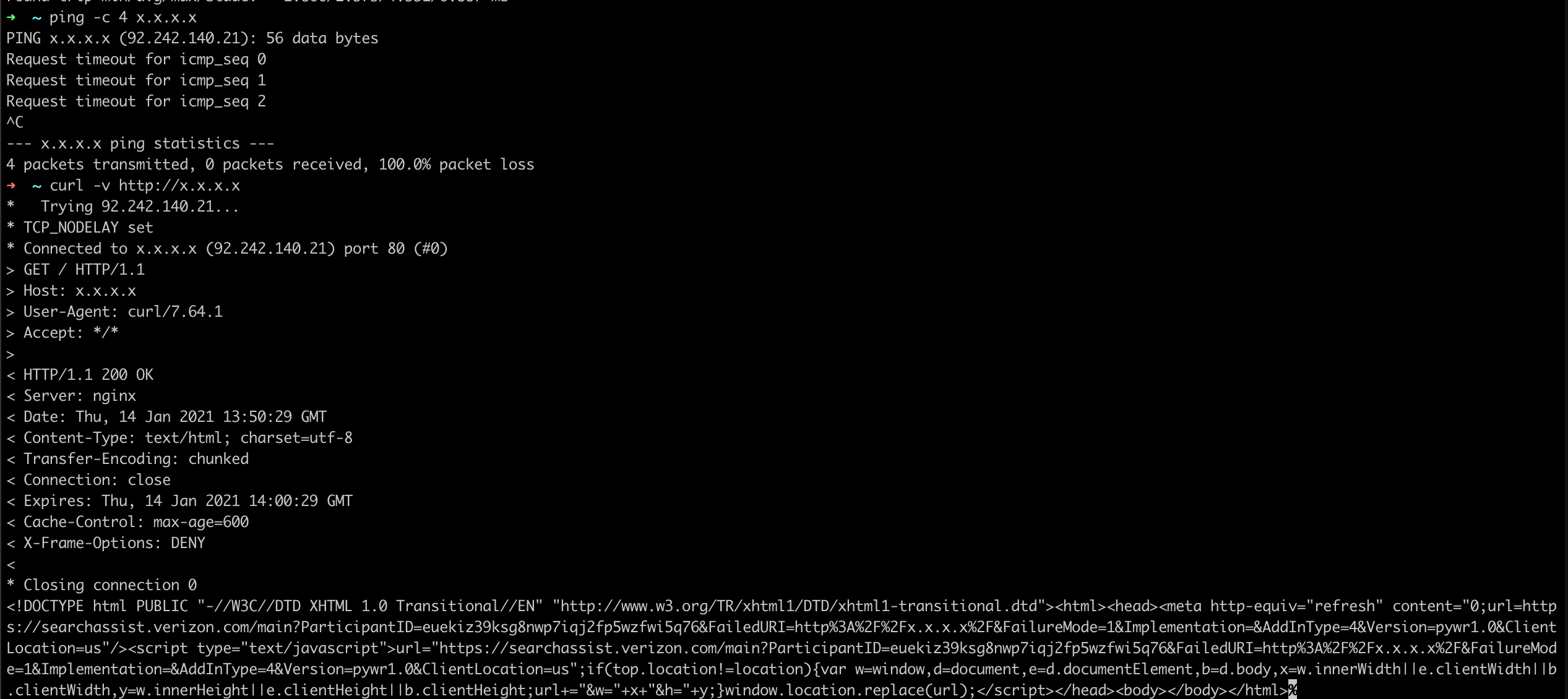 Hi there, im new channels and to using raspberry pi. I'm unable to connect to my Pi's IP address from another device. It's connected via ethernet directly into the Fios G31000 router. The server's light is solid green and is up and running, i'm able to ping it from my computer and get packets back but when I enter the IP address into the browser...nada. Is it related to my Verizon Router? Any ideas how I can fix this?
