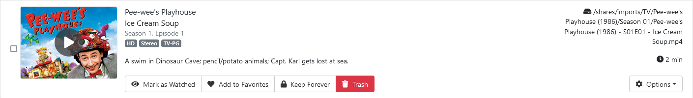 I believe this is your issue, assuming I understand your post. You added TV Shows\Pee-wee's Playhouse to the Local Content section, when what you need to do is add just TV Shows.