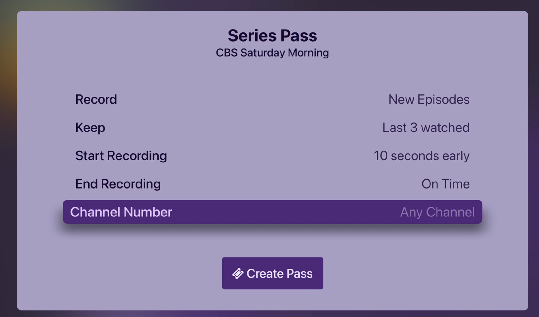 At least in the latest version of the tvOS client, we can limit Season Passes to specific channel numbers now too: